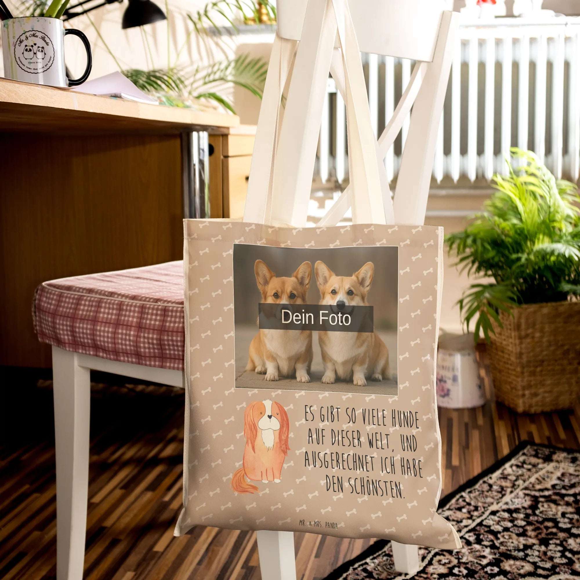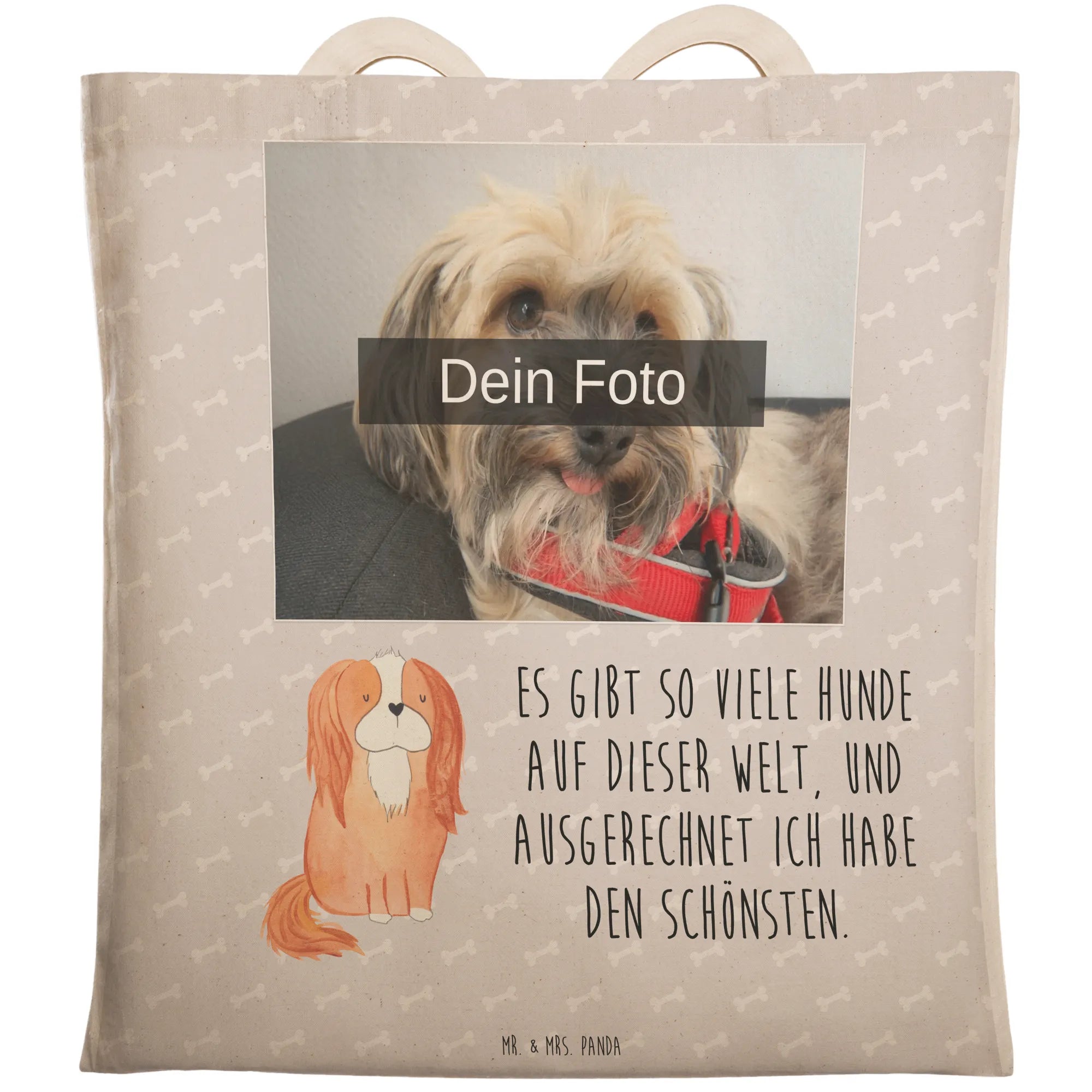 Personalisierte Foto Einkaufstasche Hund Cavalier King Charles Spaniel - Grau Pastell