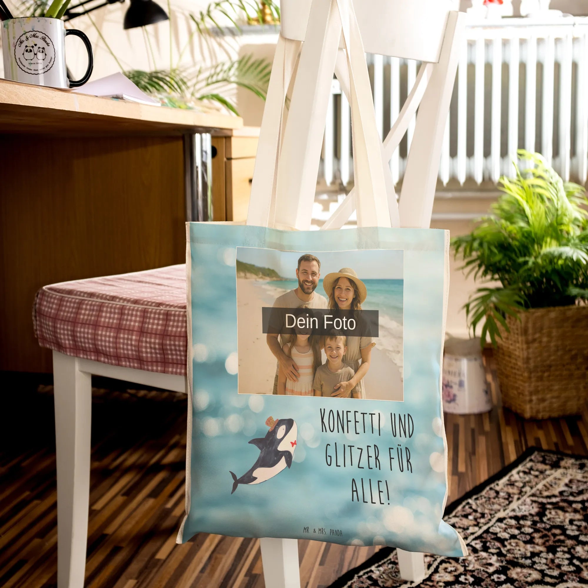 Erlebe den ultimativen Einkaufszauber mit der personalisierten Foto Einkaufstasche von Mr. & Mrs. Panda! Sie misst 420 mm x 400 mm und bietet Platz für alles, was du brauchst. Hergestellt aus hochwertiger Kunstfaser, besticht sie mit einem zeitlosen Design und ist mit süßen Motiven und Sprüchen bedruckt. Das Highlight? Dein ganz persönliches Foto, das du selbst auswählen kannst! Sei kreativ und zeige, was dir wichtig ist! Achte darauf, dass das Bild in hoher Auflösung hochgeladen wird, damit die Qualität stimmt. Diese Tasche ist nicht nur ein echter Blickfang, sie ist auch äußerst praktisch: Sie ist robust, schmutzabweisend und kann ganz einfach mit lauwarmem Wasser gereinigt werden. Die umsäumten Innennähte garantieren eine lange Lebensdauer, während die praktischen Henkel das Tragen zum Kinderspiel machen. Lass dich von ihr begeistern und mach deinen Einkauf zum Erlebnis!