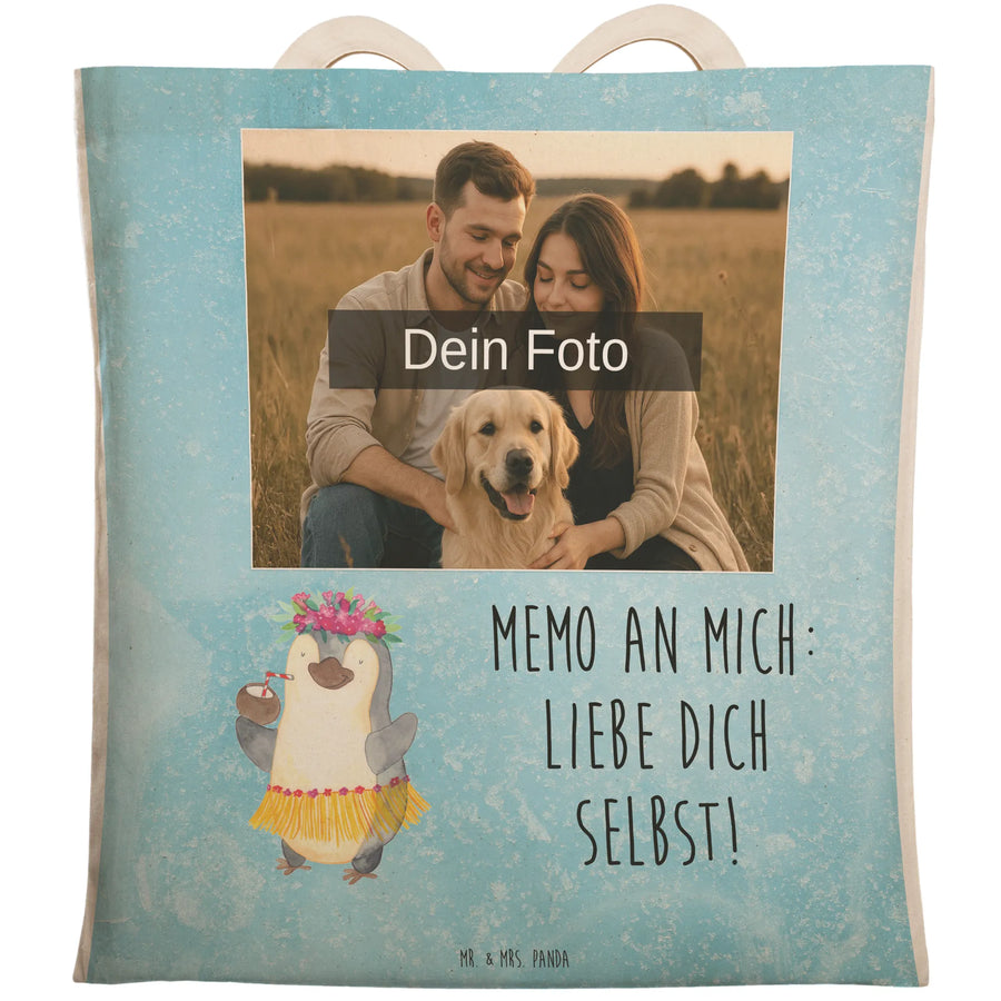 Personalisierte Foto Einkaufstasche Pinguin Kokosnuss