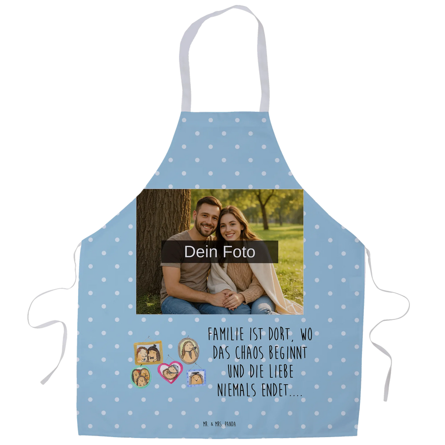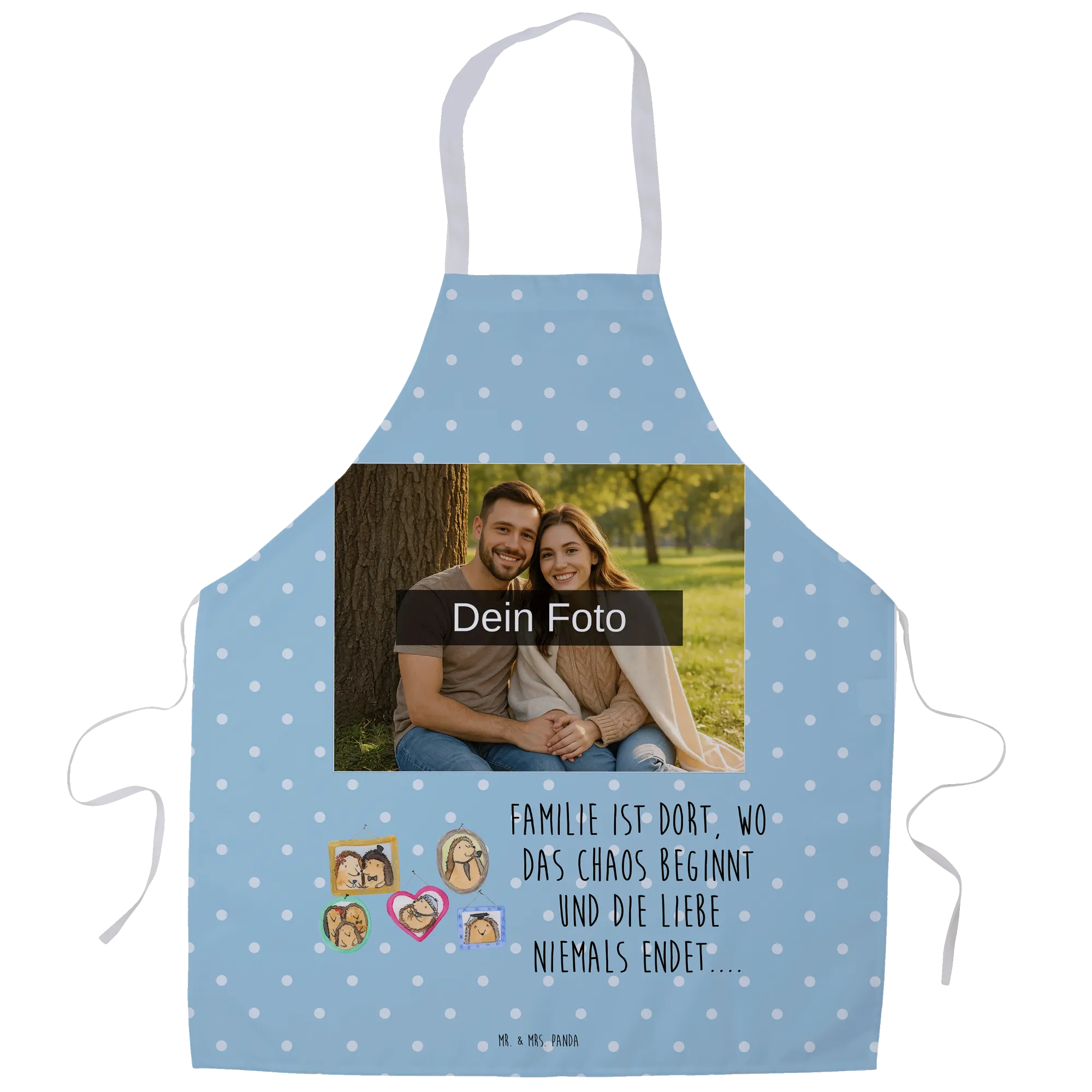 Personalisierte Foto Kochschürze Igel Familie - Blau Pastell