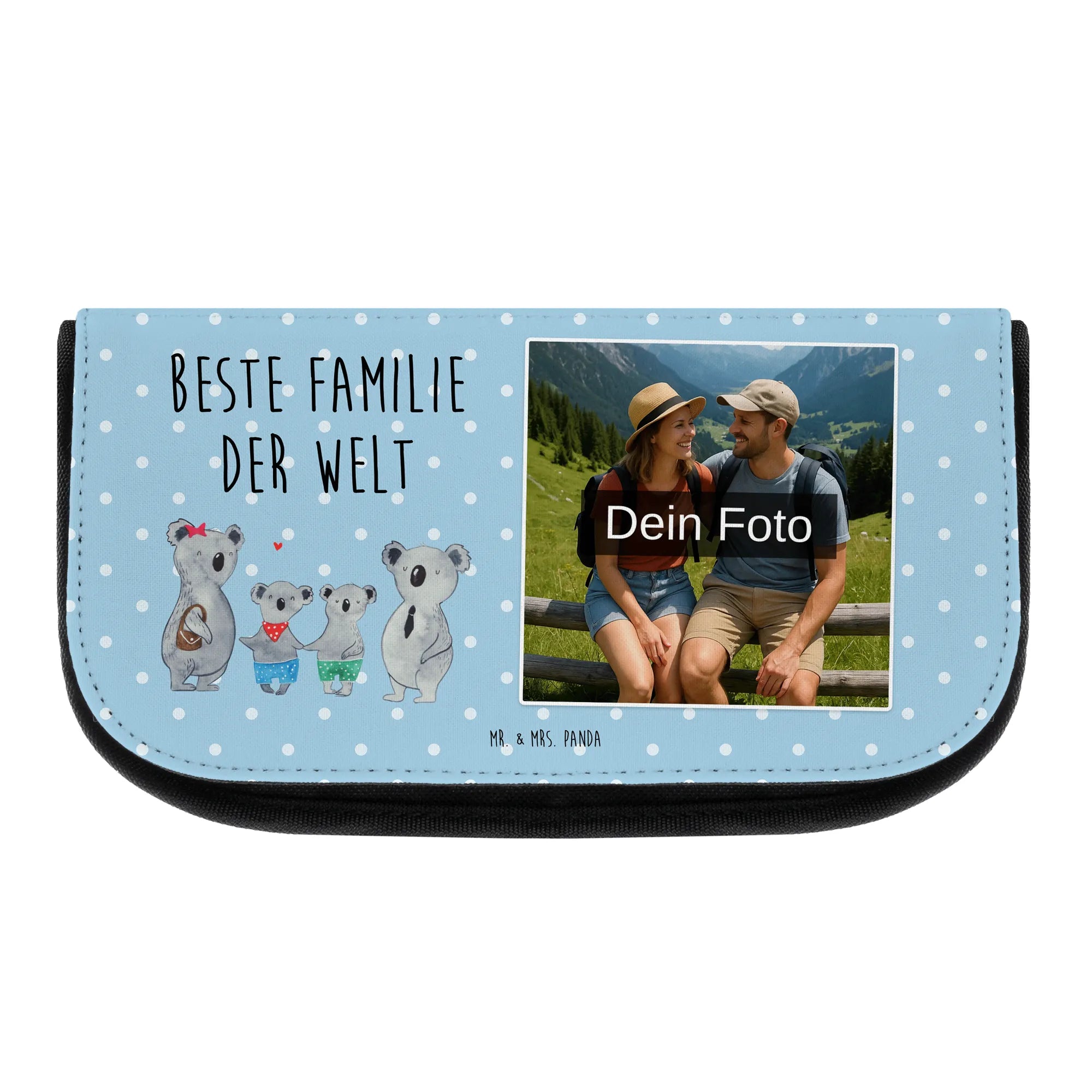 Personalisierte Foto Kosmetiktasche Koala Familie zwei - Blau Pastell