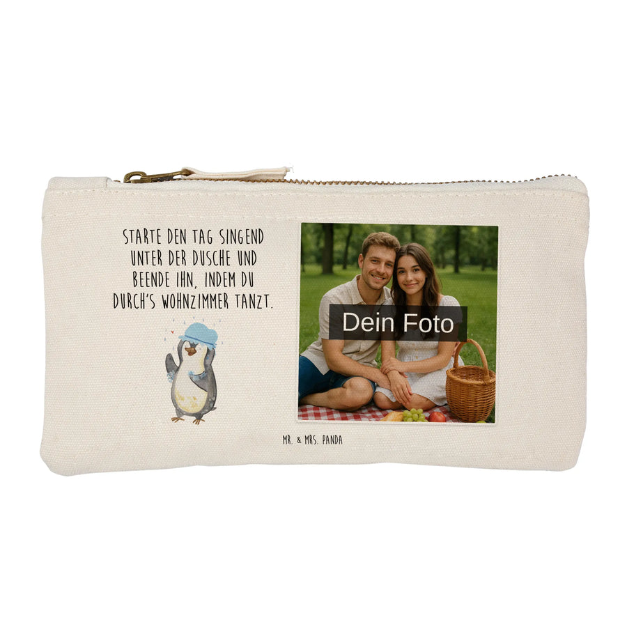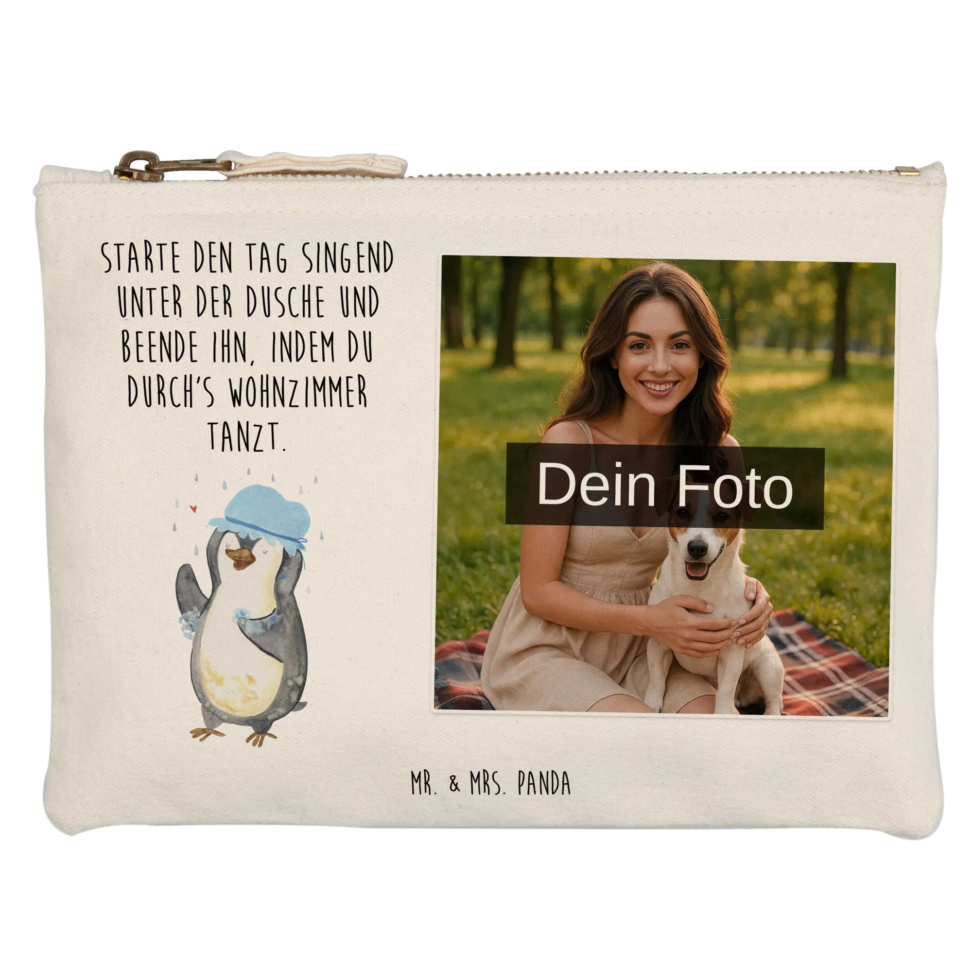 Personalisierte Foto Schminktasche Pinguin Duschen - Größe S Klein