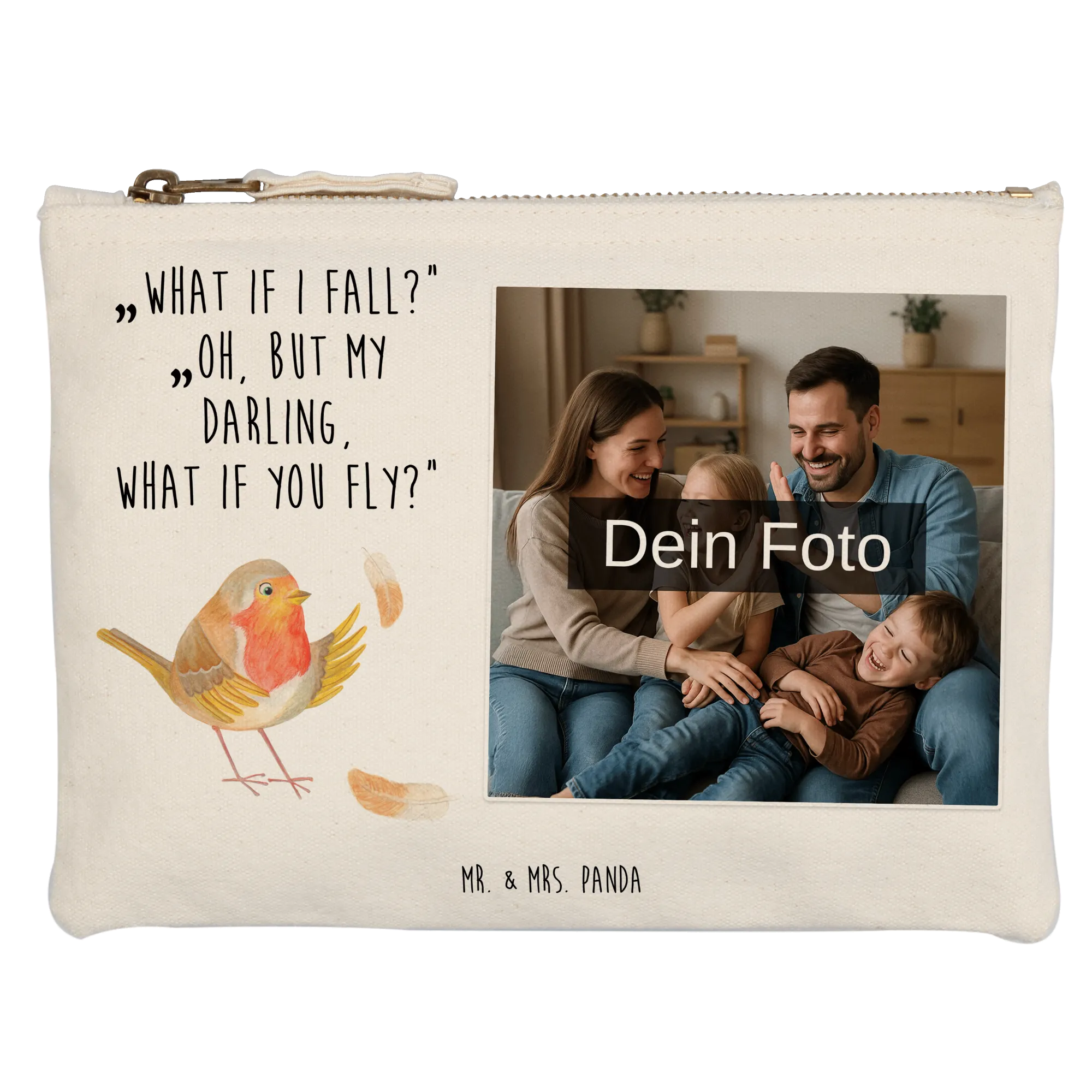 Personalisierte Foto Schminktasche Rotkehlchen Federn – Mr. & Mrs. Panda
