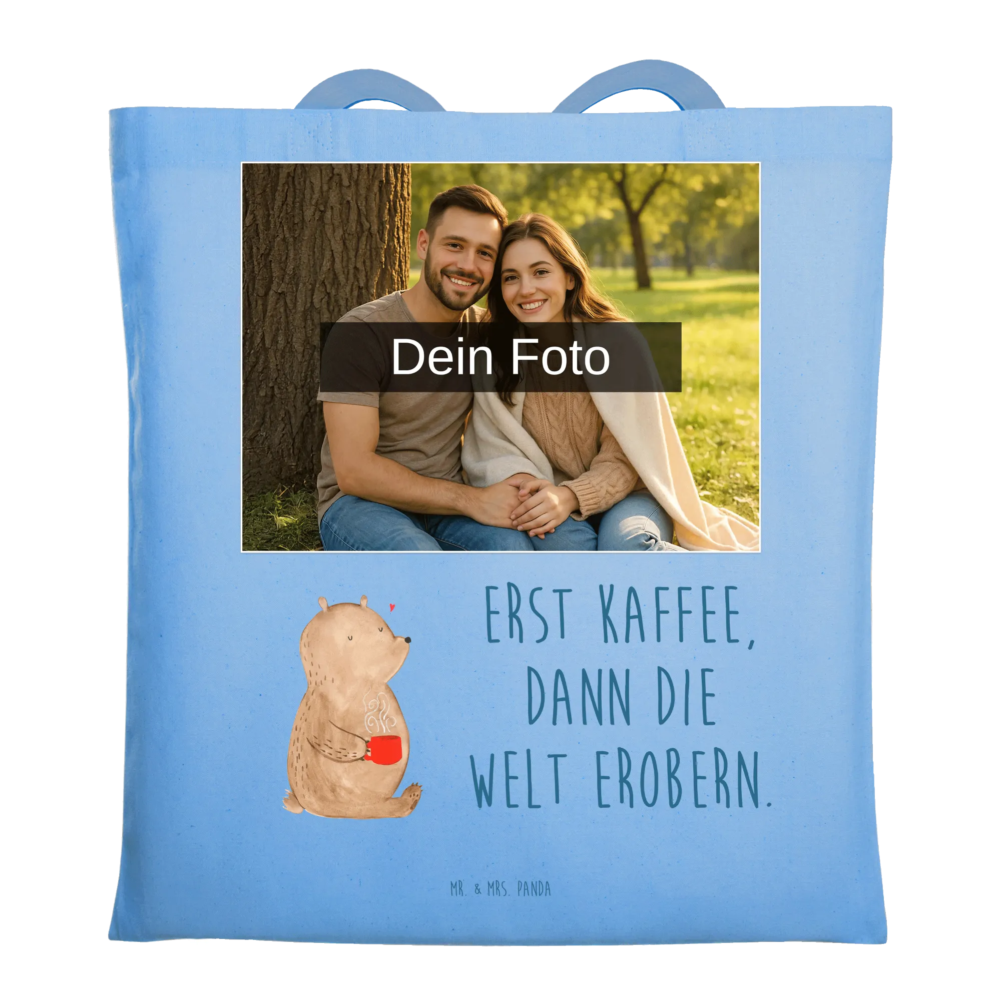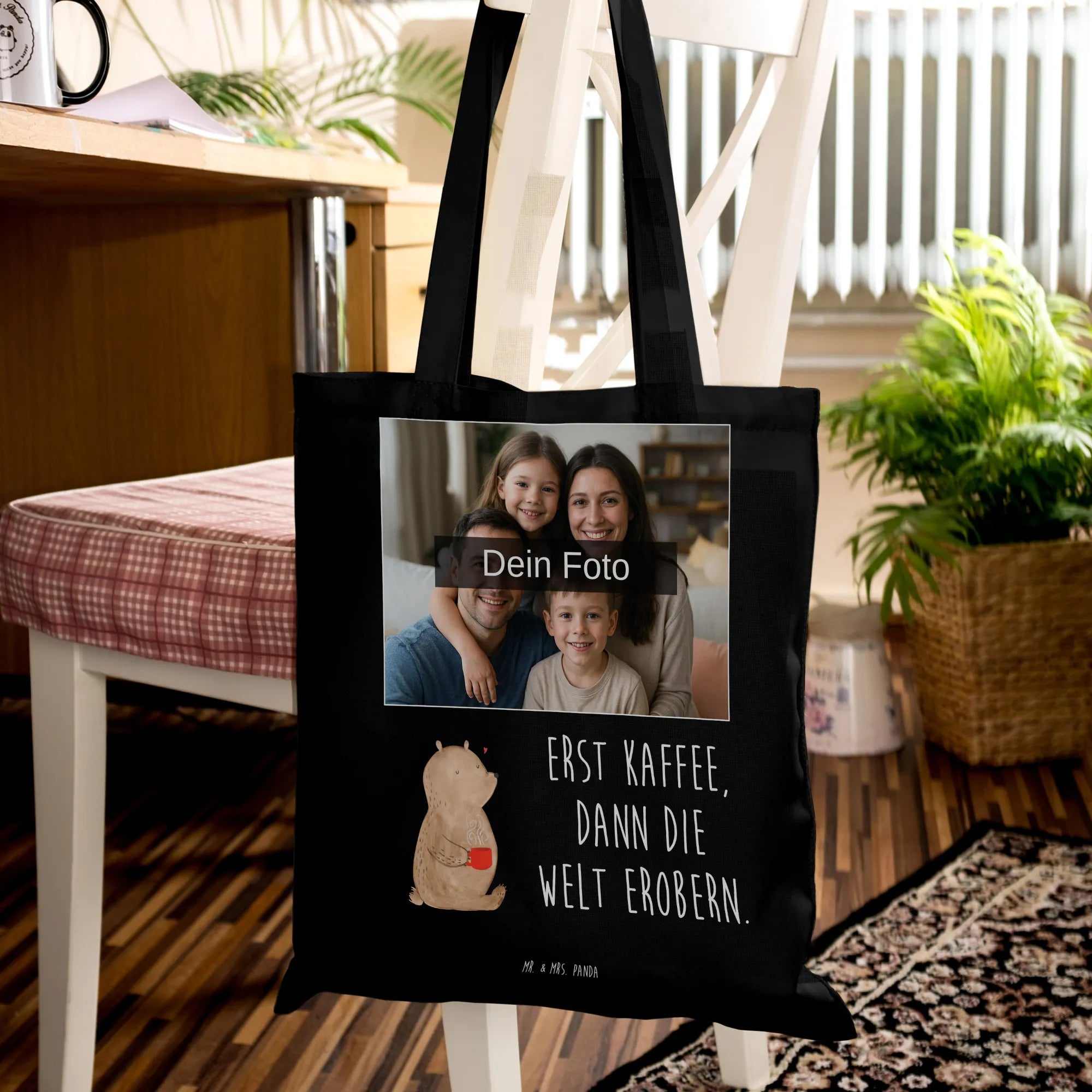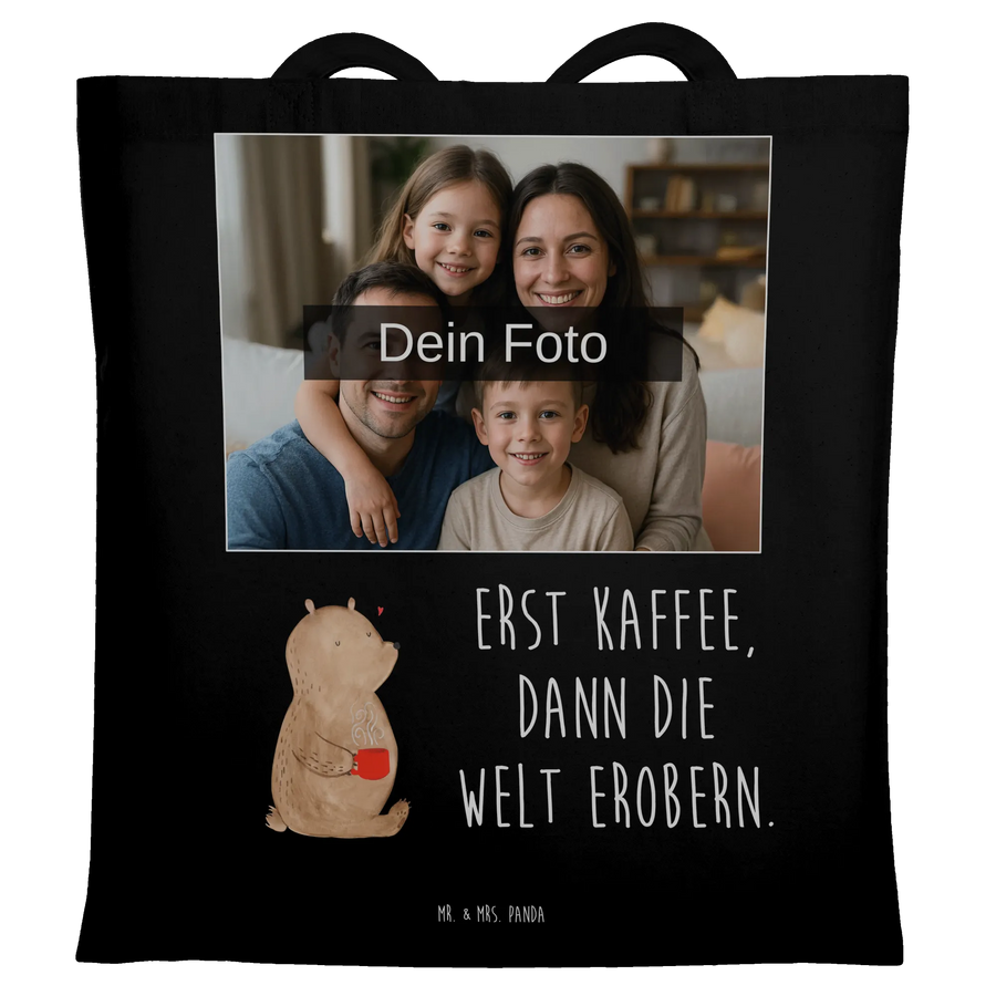 Personalisierte Foto Tragetasche Bär Kaffee - Schwarz