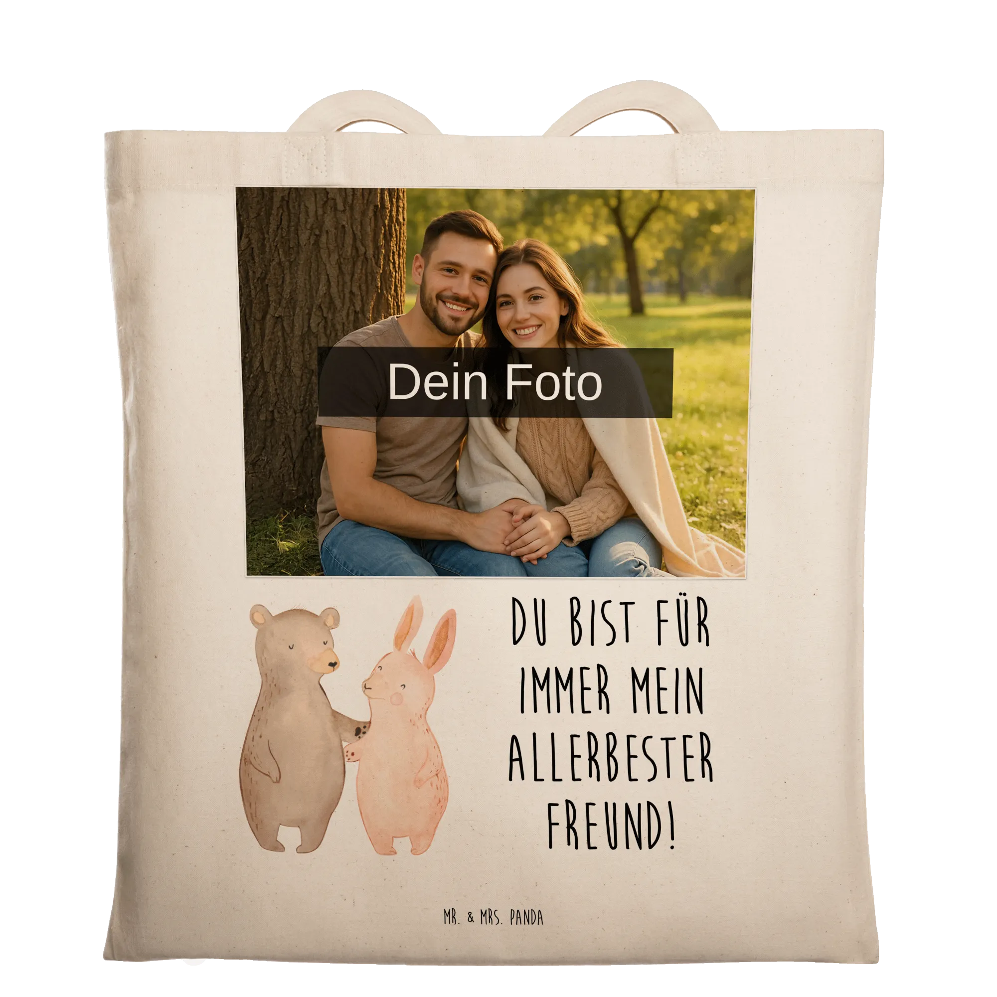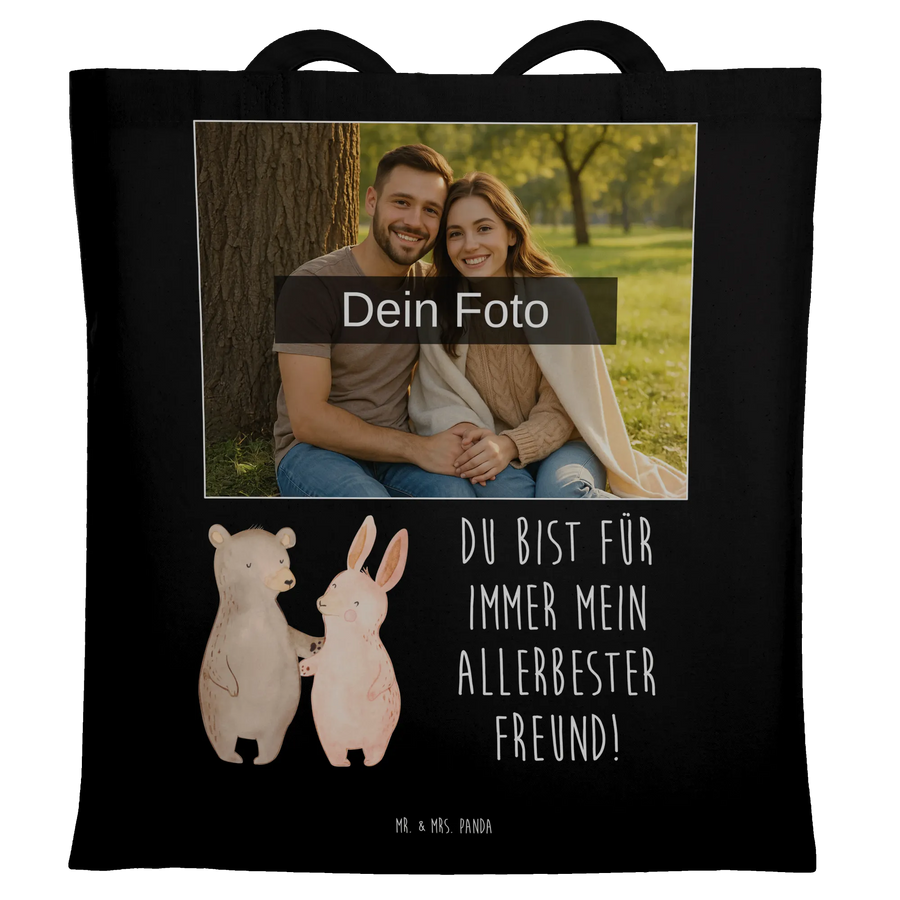 Personalisierte Foto Tragetasche Bär und Hase Umarmen - Schwarz