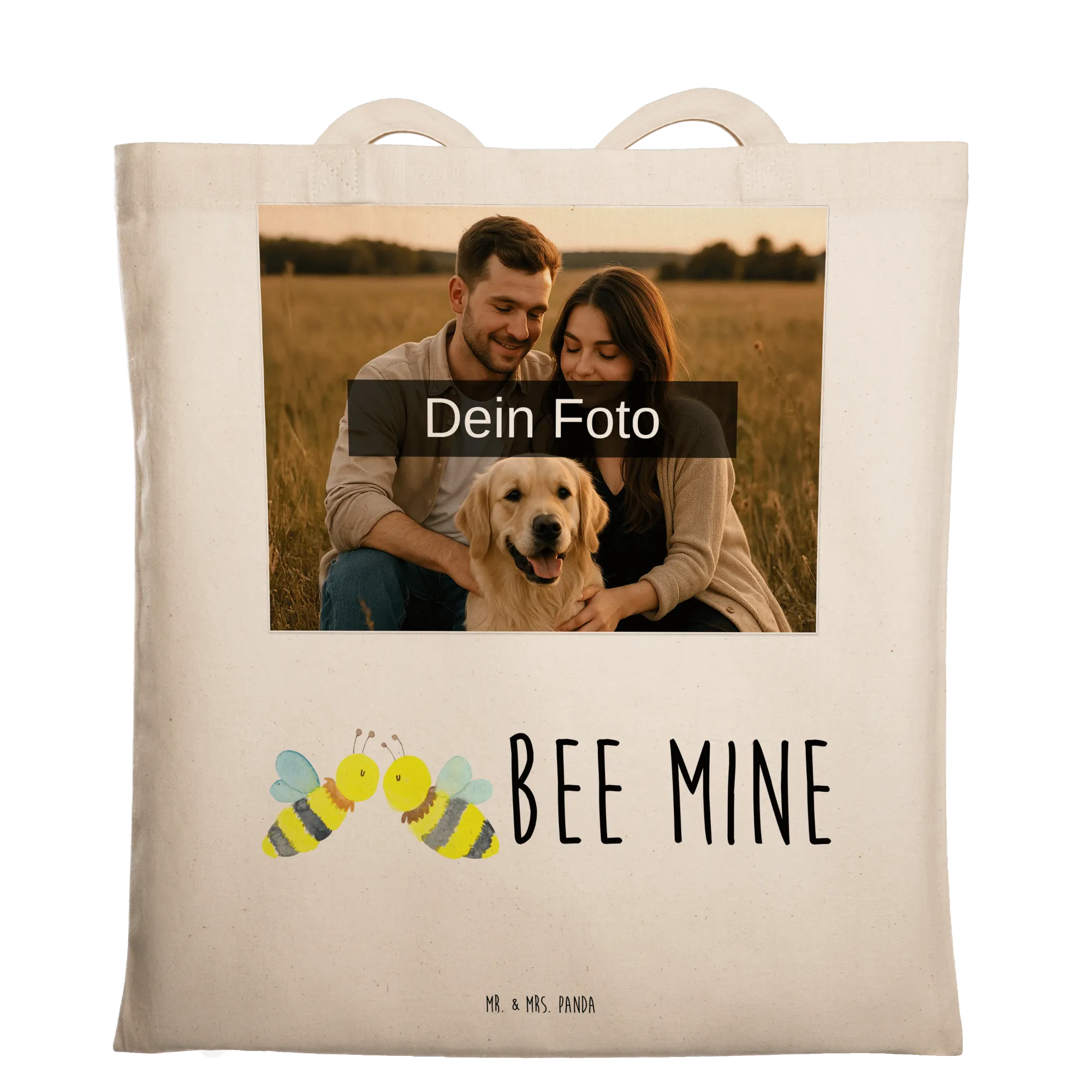 Verschönere deinen Alltag mit der personalisierten Foto Tragetasche von Mr. & Mrs. Panda! Diese trendige Tasche hat die Maße 420 mm x 380 mm und bietet ausreichend Platz für alles, was du unterwegs benötigst. Sie ist aus 100% Baumwolle mit einem Gewicht von 140 g/m² gefertigt, was sie sowohl praktisch als auch umweltfreundlich macht. Gestalte sie mit deinem eigenen Foto und bring dein persönliches Flair zum Vorschein! Bitte achte darauf, dass die Bildqualität stimmt, um ein tolles Druckergebnis zu erhalten. Der Bildausschnitt muss sorgfältig gewählt werden, damit dein Motiv optimal zur Geltung kommt. Mit langen Tragegriffen von 70 cm ist die Tasche super bequem zu tragen. Damit du lange Freude an ihr hast, empfehlen wir eine Pflege durch lauwarme Handwäsche. Dies ist die ideale Tasche für Geschenke oder um deiner Garderobe eine besondere Note zu verleihen!