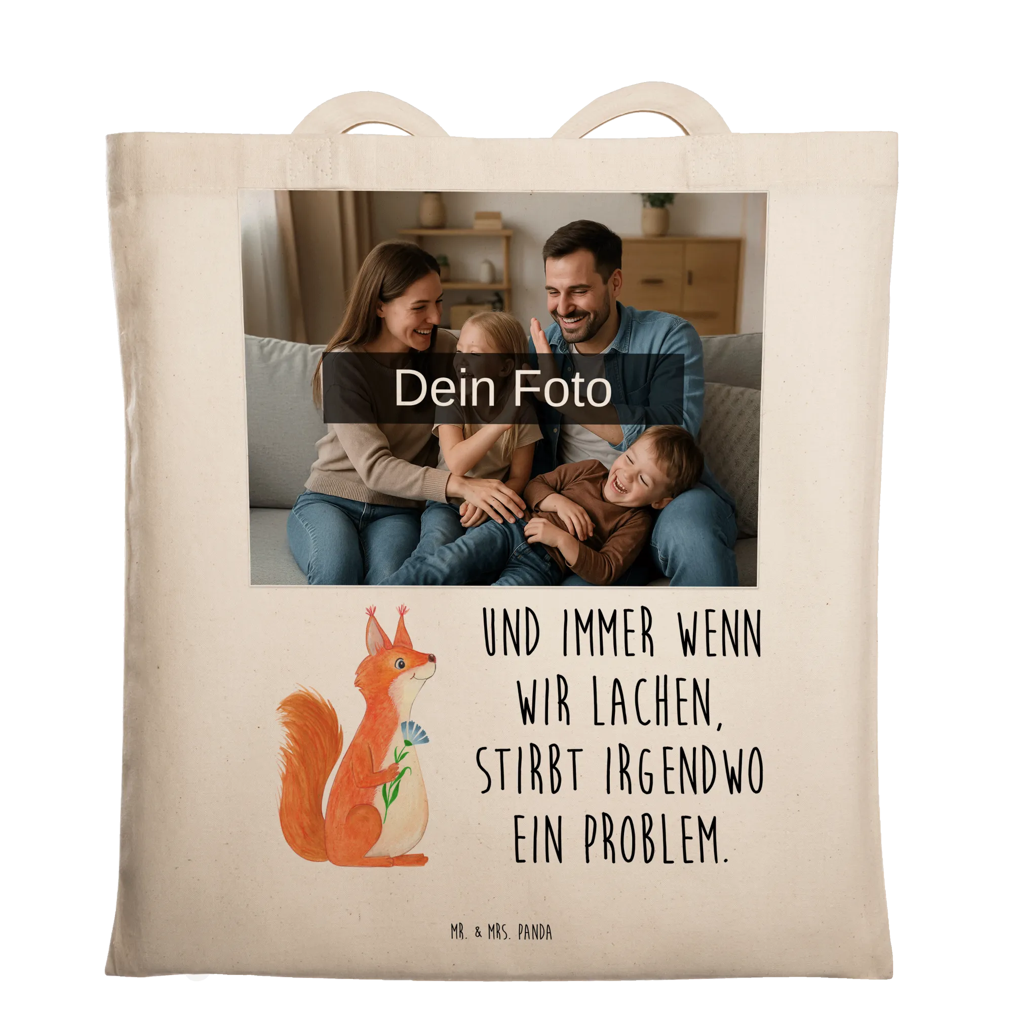 Personalisierte Foto Tragetasche Eichhörnchen Blume - Schwarz
