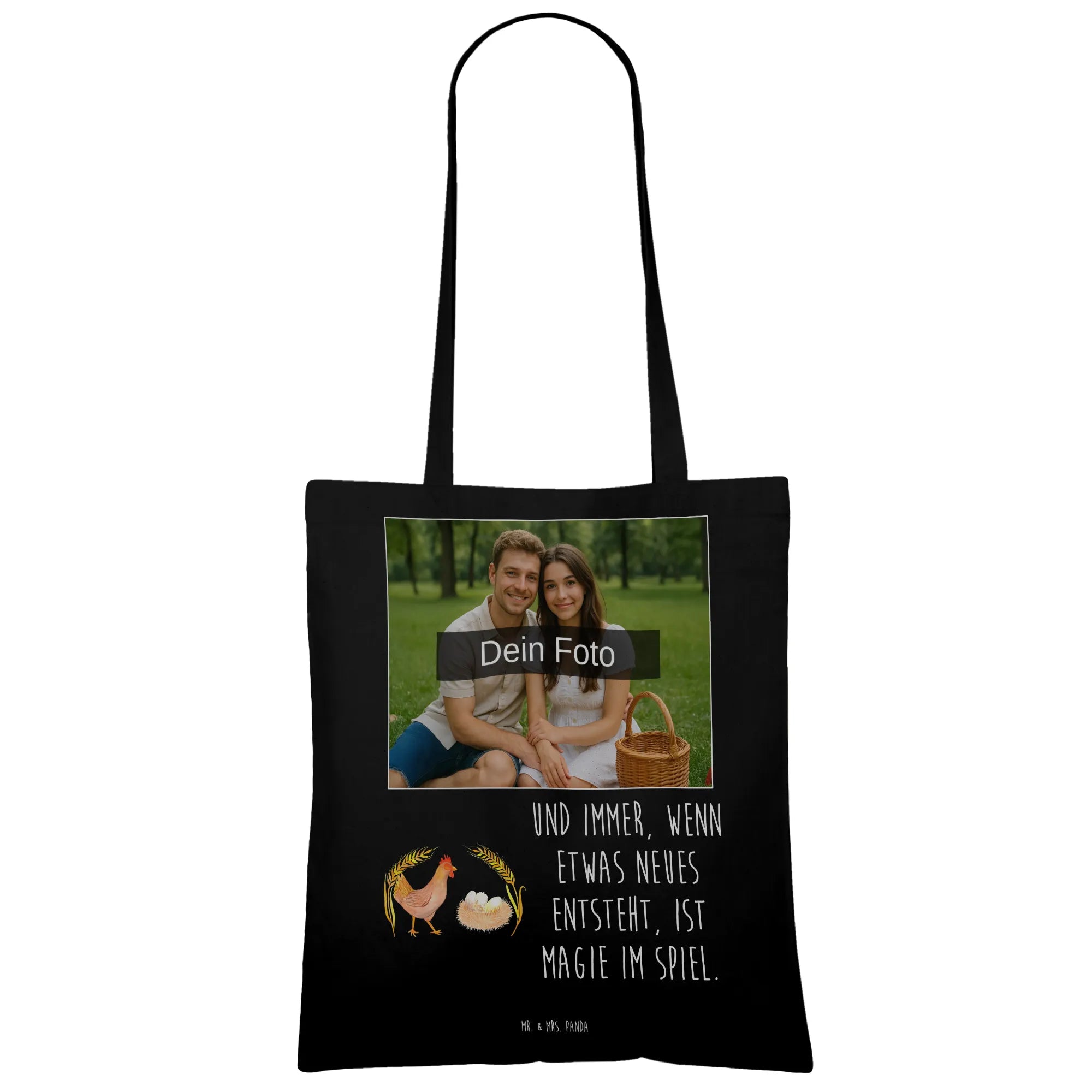 Personalisierte Foto Tragetasche Huhn Stolz - Schwarz