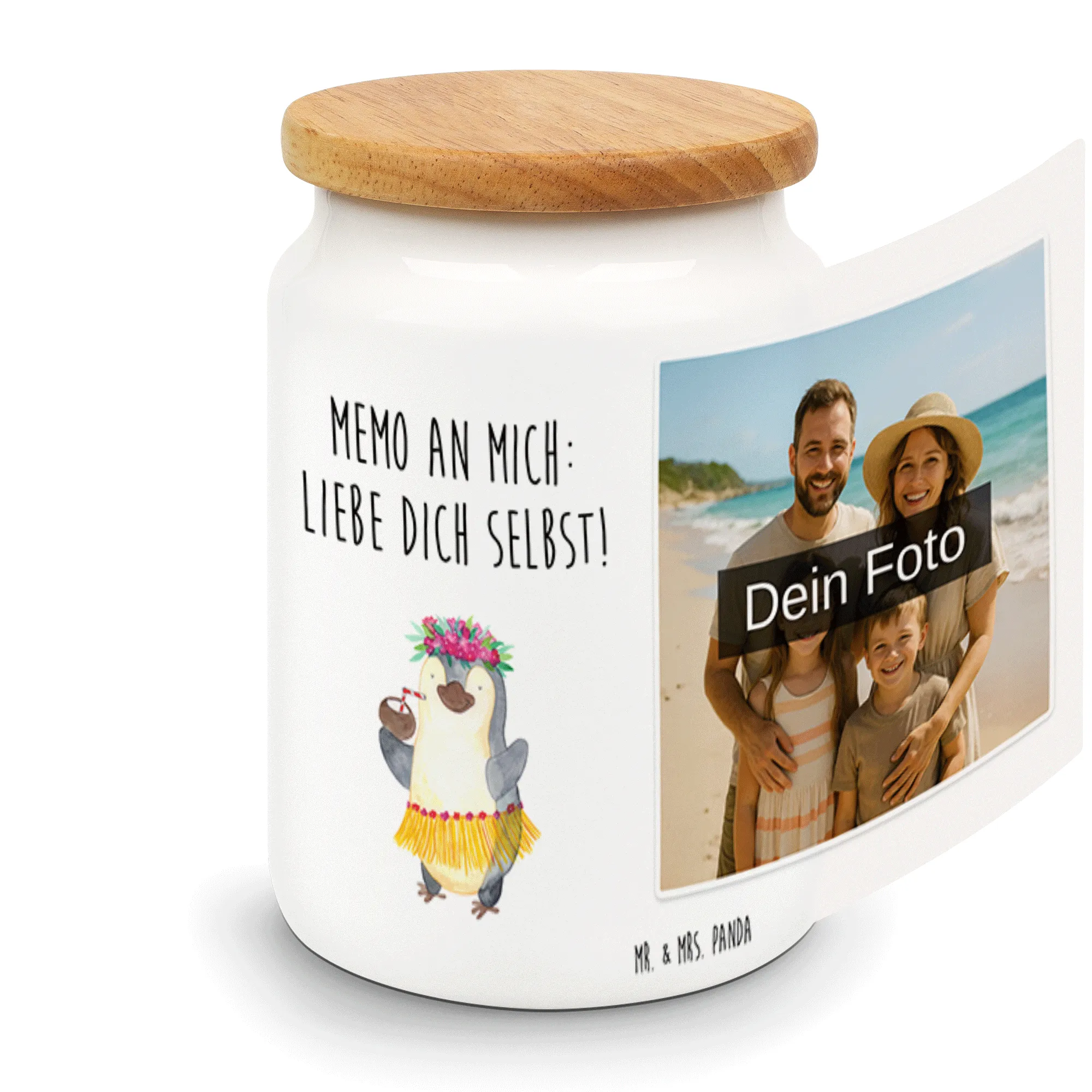 Personalisierte Foto Vorratsdose Pinguin Kokosnuss