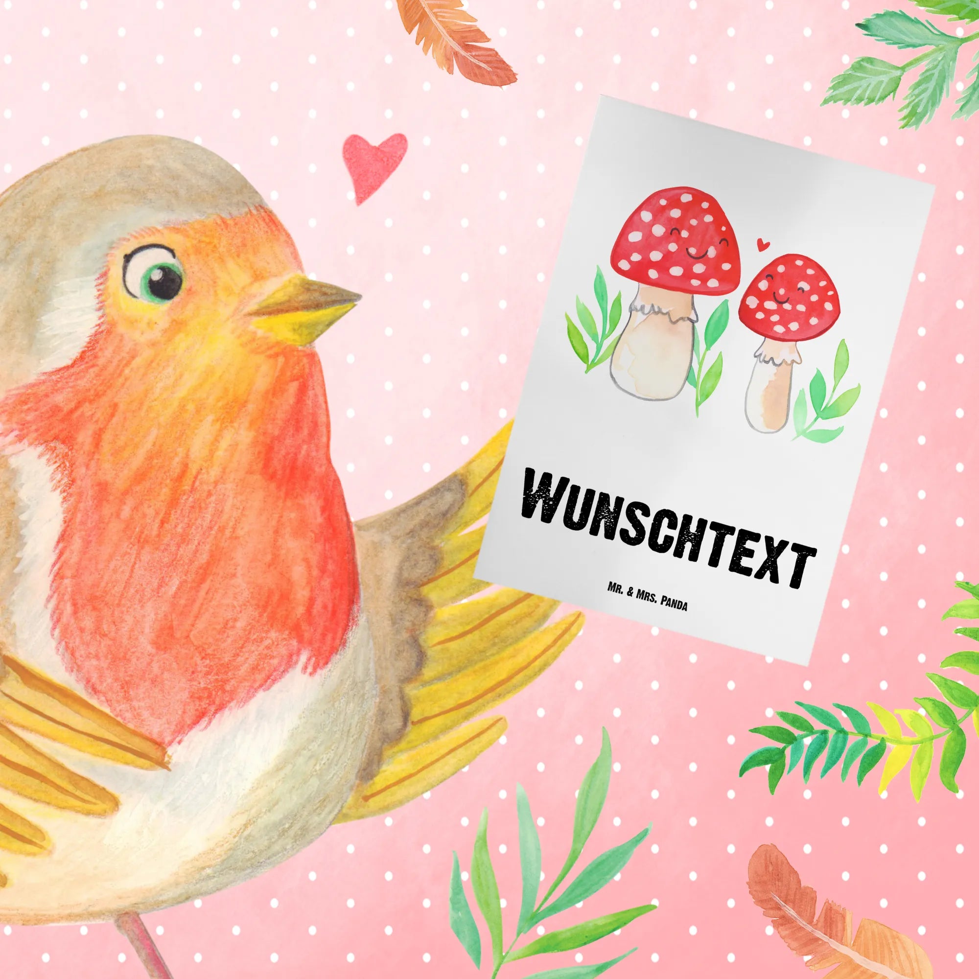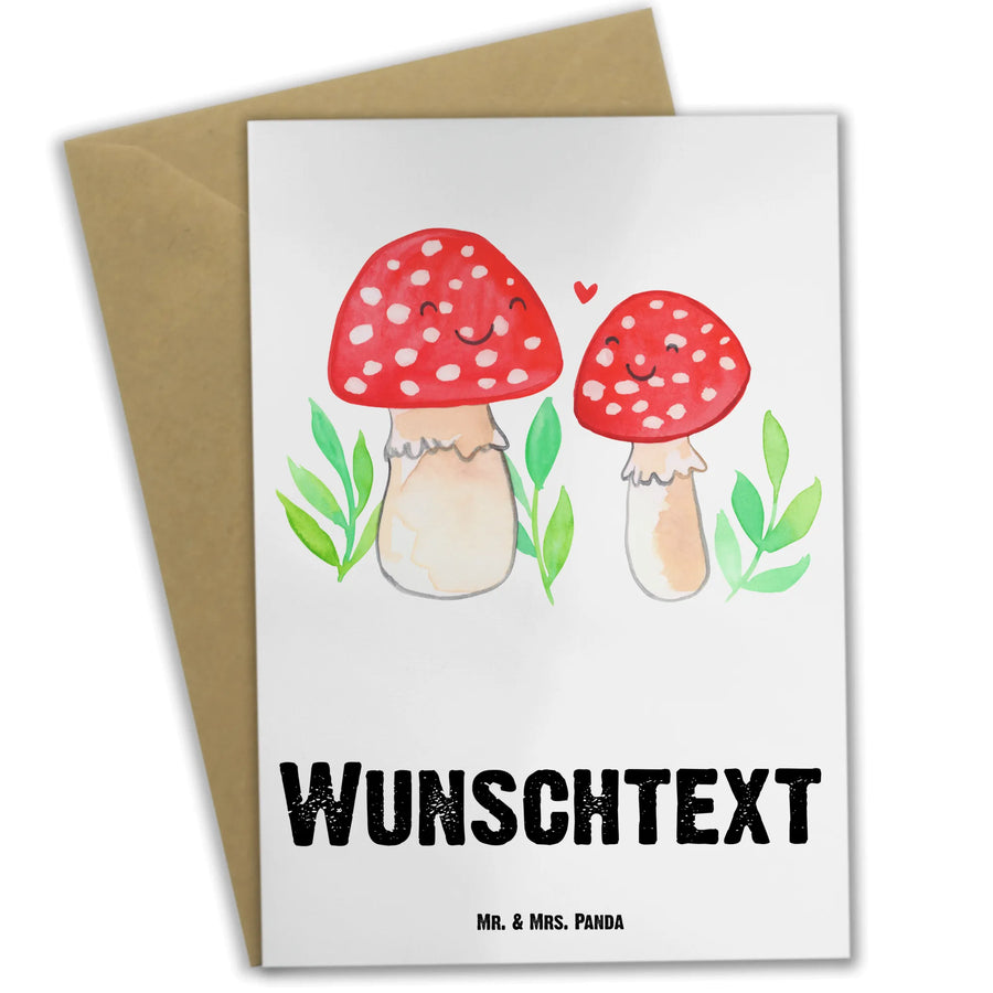 Die perfekte persönliche Karte für Deine Mama – die "Glückspilze Mama" von Mr. & Mrs. Panda. Diese liebevoll gestaltete, personalisierbare Grußkarte zeigt zwei fröhliche rote Fliegenpilze mit weißen Punkten, ein kleines rotes Herz und zarte grüne Blätter – ein Motiv, das Geborgenheit, Liebe und Freude ausstrahlt. Du kannst die Vorderseite mit deinem Wunschnamen oder Wunschtext personalisieren und so eine einzigartige Muttertagskarte oder Geburtstagskarte schaffen. 😊