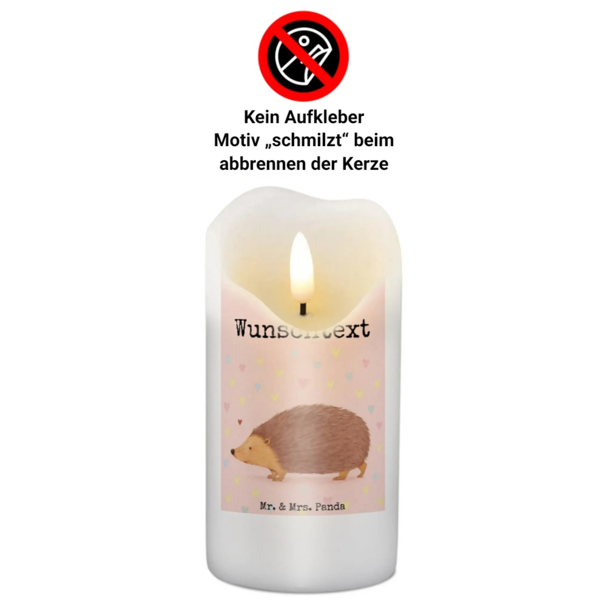 Personalisierte Kerze Igel Herzen Design - 15 x 7 cm
