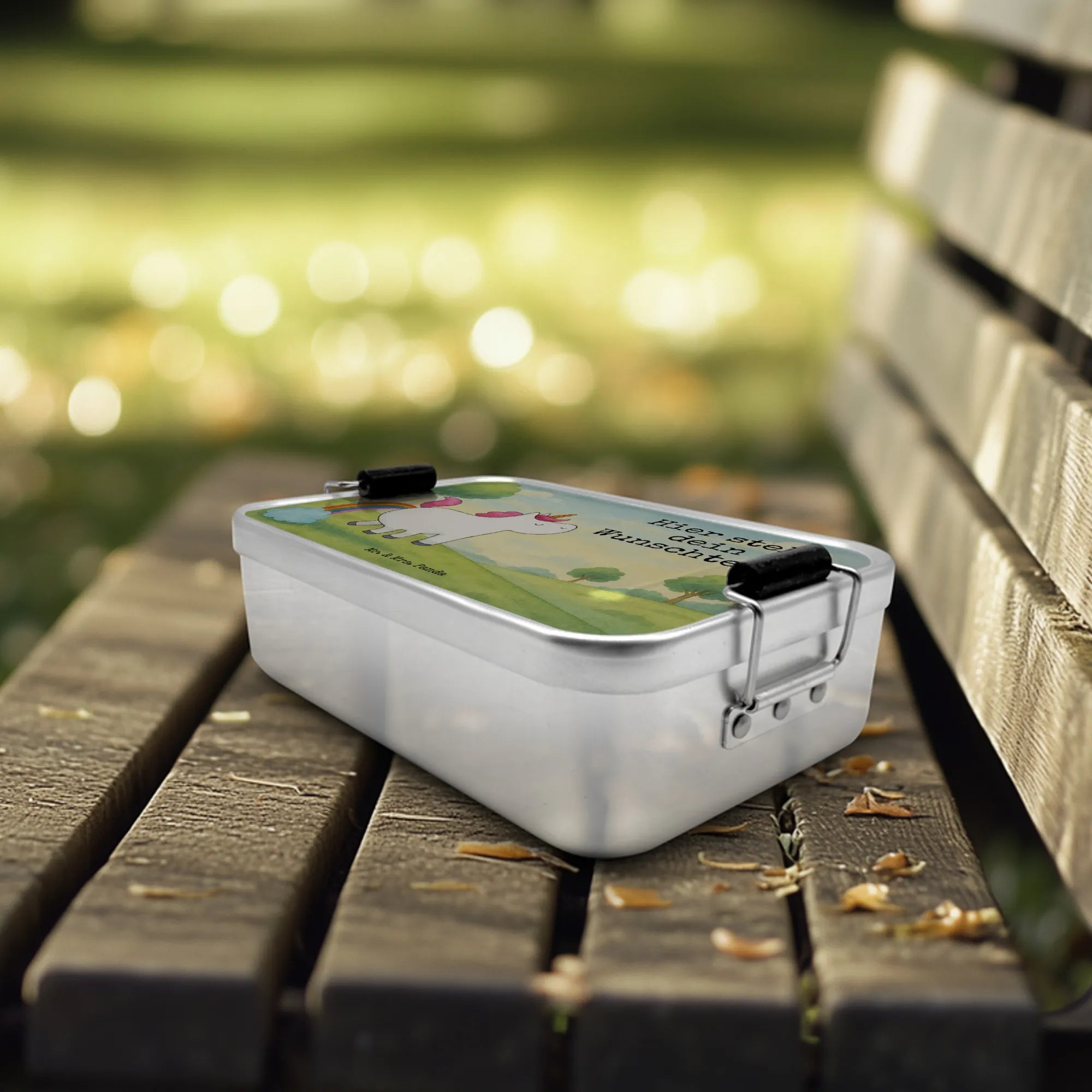 Lass deine Pausenbrote erstrahlen in der personalisierten Metall Brotdose von Mr. & Mrs. Panda! Diese exquisite Brotdose, perfekt für Schule und Büro, misst 173 mm x 118 mm x 55 mm und bietet viel Platz für all deine Snacks. Sie ist aus hochwertigem, langlebigem Aluminium gefertigt und besticht durch die farbenfrohen und charmanten Designs, die von Mr. & Mrs. Panda entworfen wurden. Die Brotdose kann mit deinem individuellen Namen oder Wunschtext personalisiert werden, wodurch sie zu einem ganz besonderen Geschenk für Freunde und Familie wird. Ihre robuste Bauweise und der nostalgische Retrolook machen sie zu einem treuen Begleiter in deinem Alltag. Mit dem sicheren Doppelverschluss durch Klemmbügel bleiben deine Snacks frisch und geschützt. Darüber hinaus garantiert die Prüfung auf Lebensmittelechtheit, dass du dir beim Essen keine Sorgen machen musst. Pflege die Brotdose einfach mit der Hand und einem weichen Schwamm, um die Farben strahlend zu halten! Diese personalisierte Brotdose ist ein absolutes Must-Have!