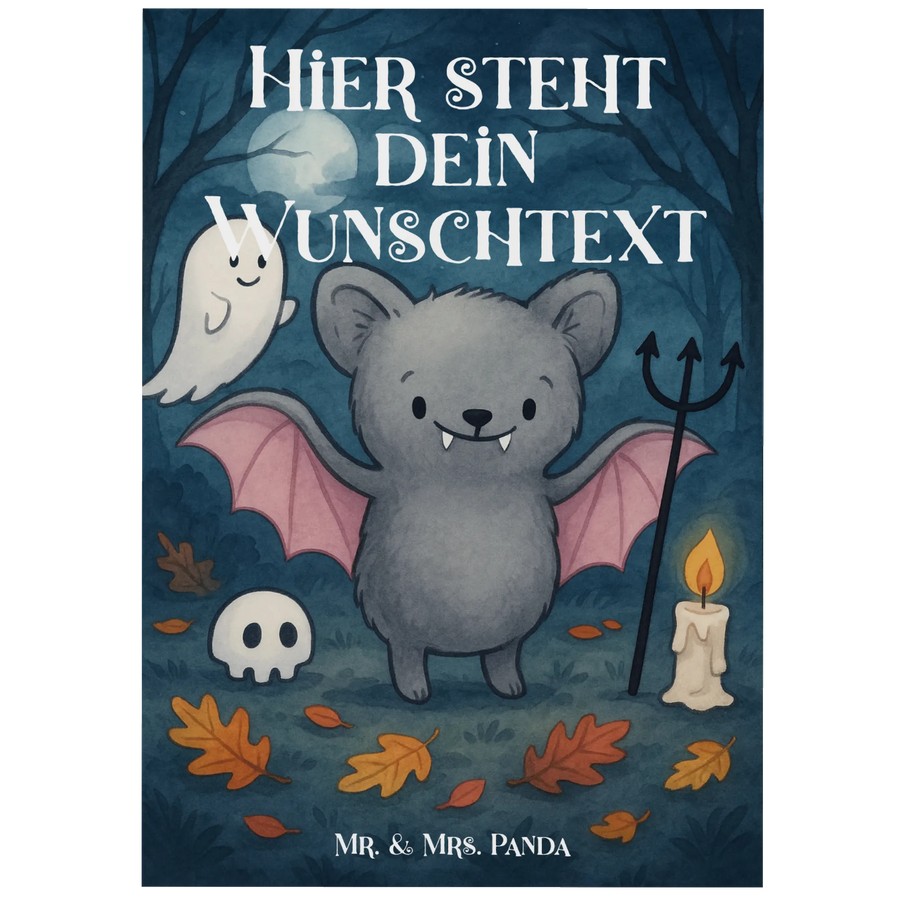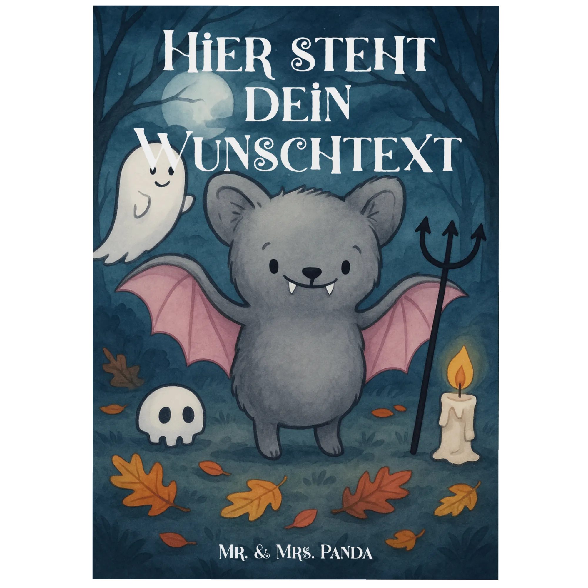 Die bezaubernde Fledermaus Dracula schwebt durch die Nacht und bringt uns ein Stückchen Halloween-Zauber. Mit ihrem freundlichen Gesichtsausdruck und den kleinen Fangzähnchen erinnert sie uns daran, dass auch die düstersten Figuren im Licht der Freundschaft erstrahlen können. Umgeben von fröhlichen Geistern und einem kleinen Totenschädel, der charmant zwischen den Schatten lauert, gibt es keinen Grund zur Furcht – nur jede Menge Freude! Die brennende Kerze mit dem herabtropfenden Wachs macht das Bild perfekt und erleuchtet unsere Herzen. Das Motiv bringt die lebhafte, lustige Seite von Halloween zum Vorschein, die uns alle zum Schmunzeln bringt und uns einlädt, die Magie dieser Saison zu genießen.