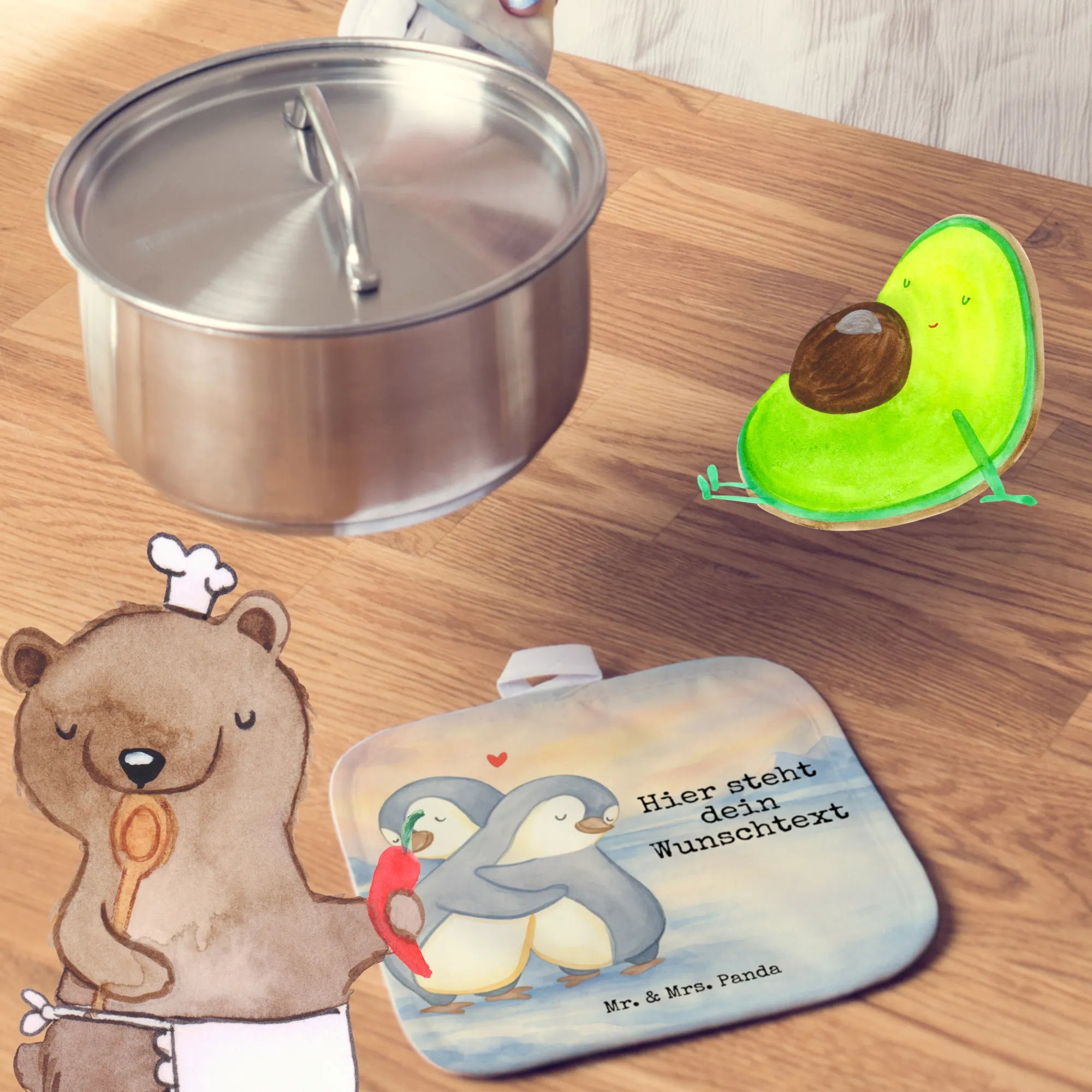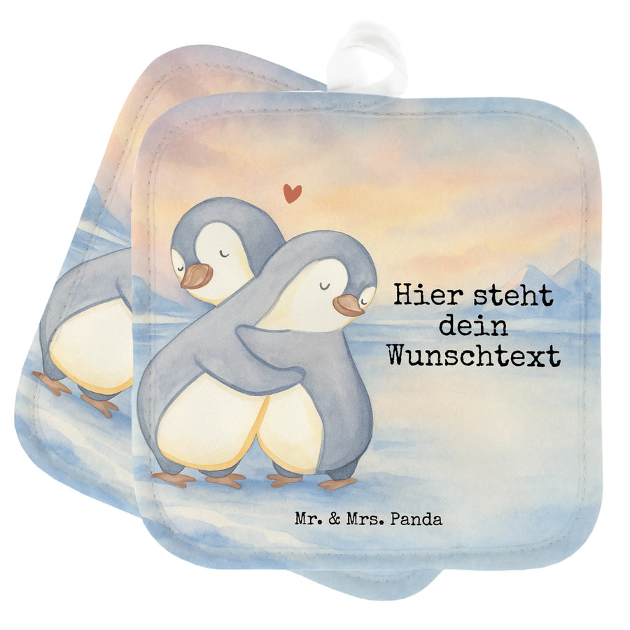 Personalisierte Topflappen Pinguine Kuscheln Design – Mr. & Mrs. Panda