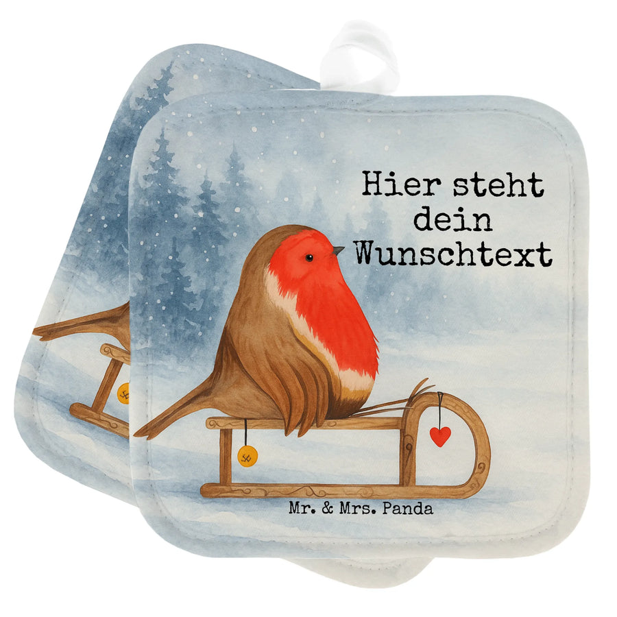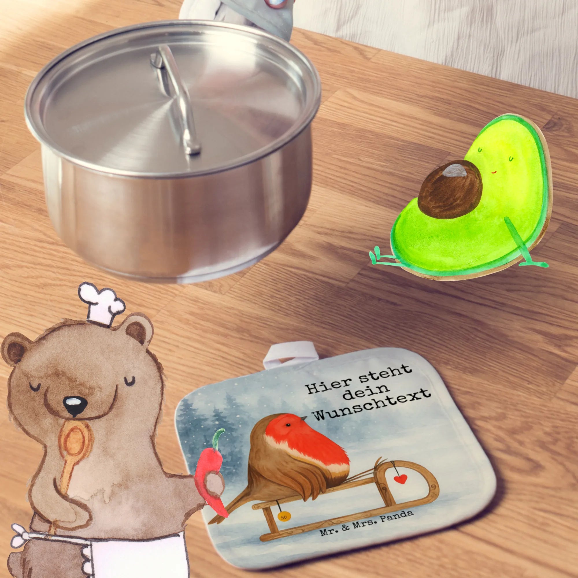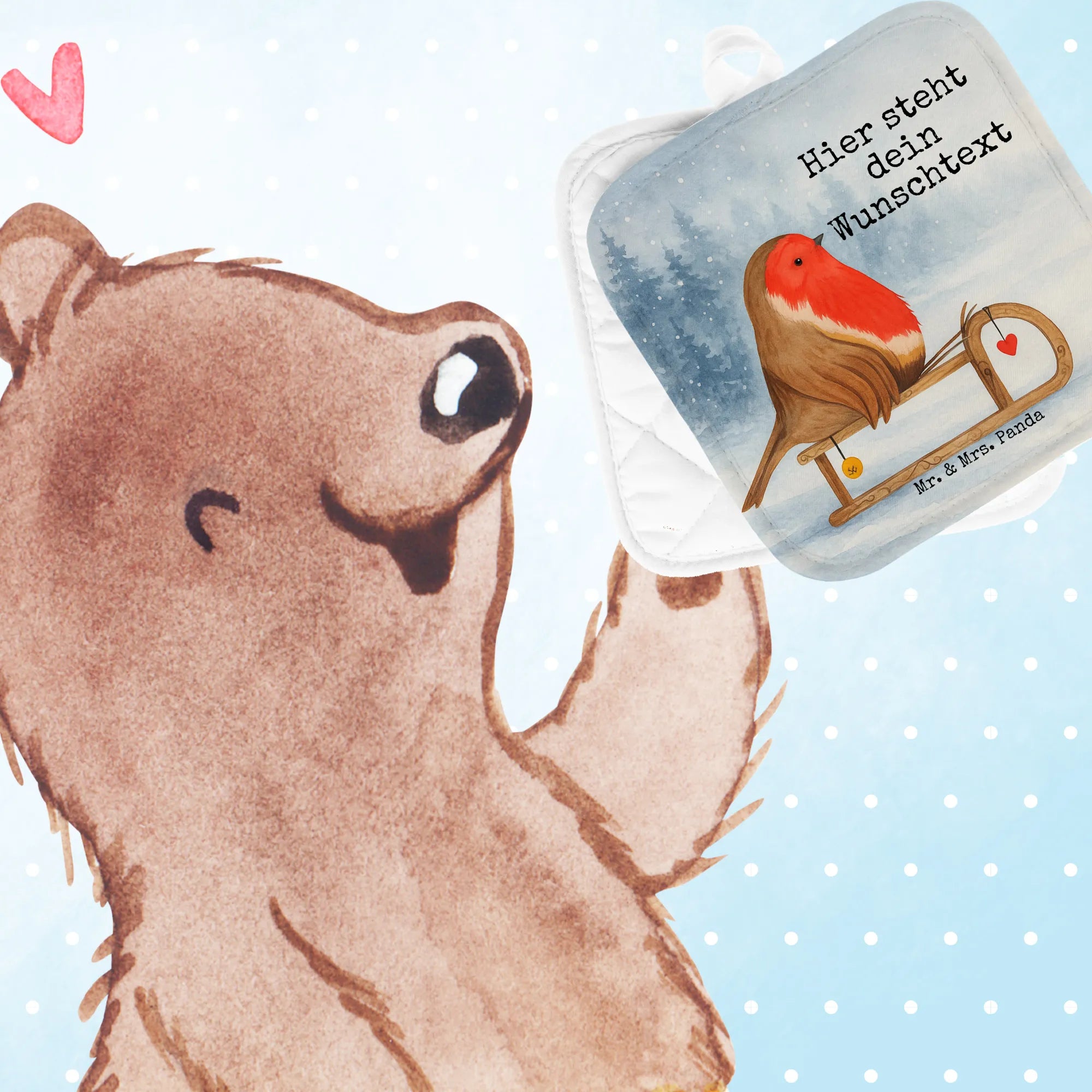 Personalisierte Topflappen Rotkehlchen Schlitten Design – Mr. & Mrs. Panda