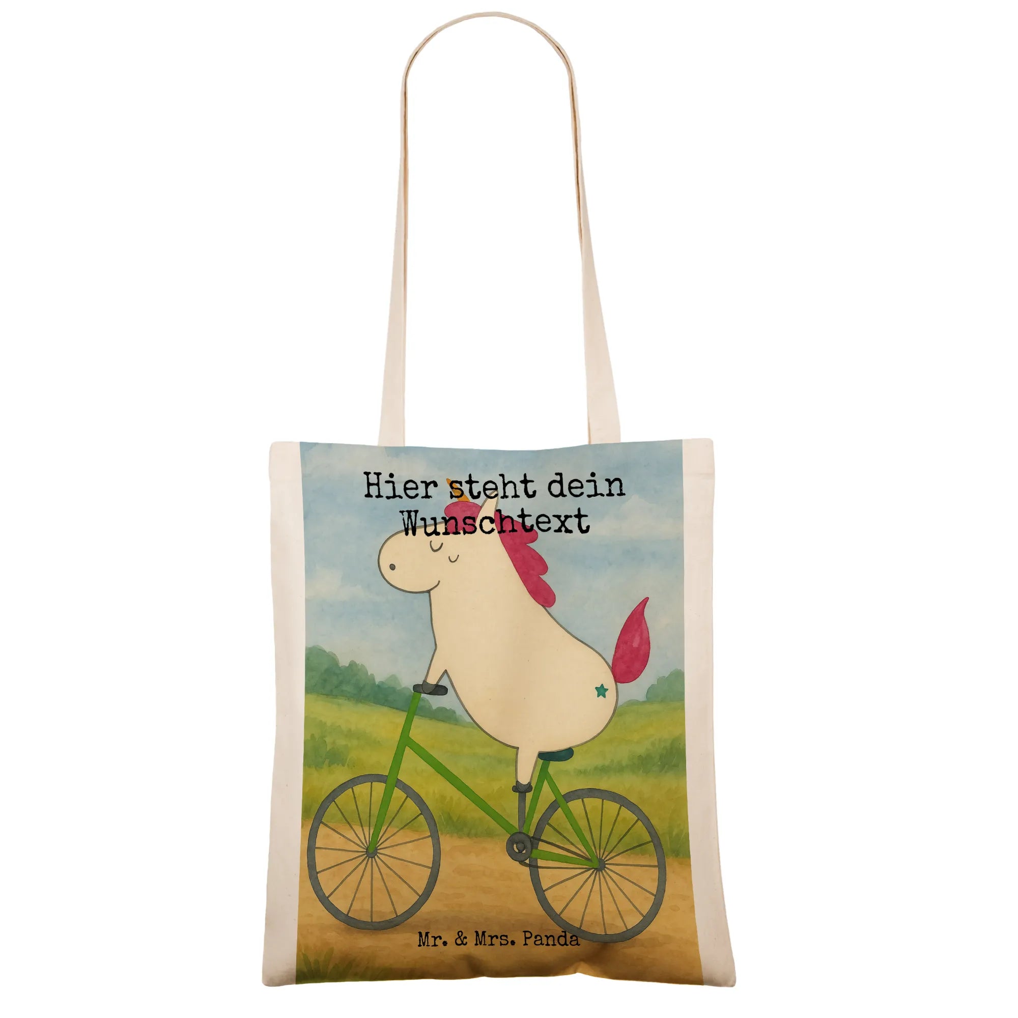 Personalisierte Tragetasche Einhorn Radfahrer Design