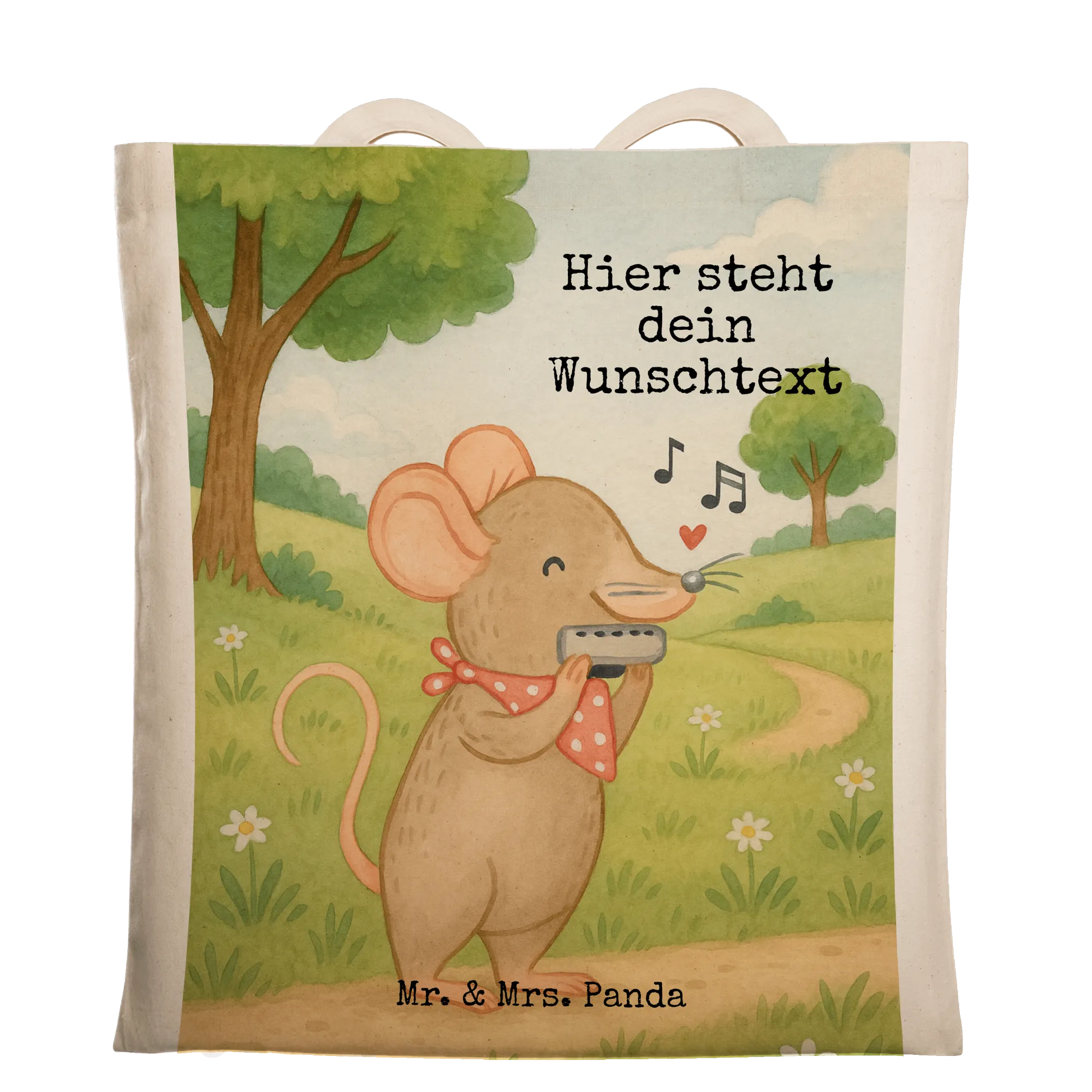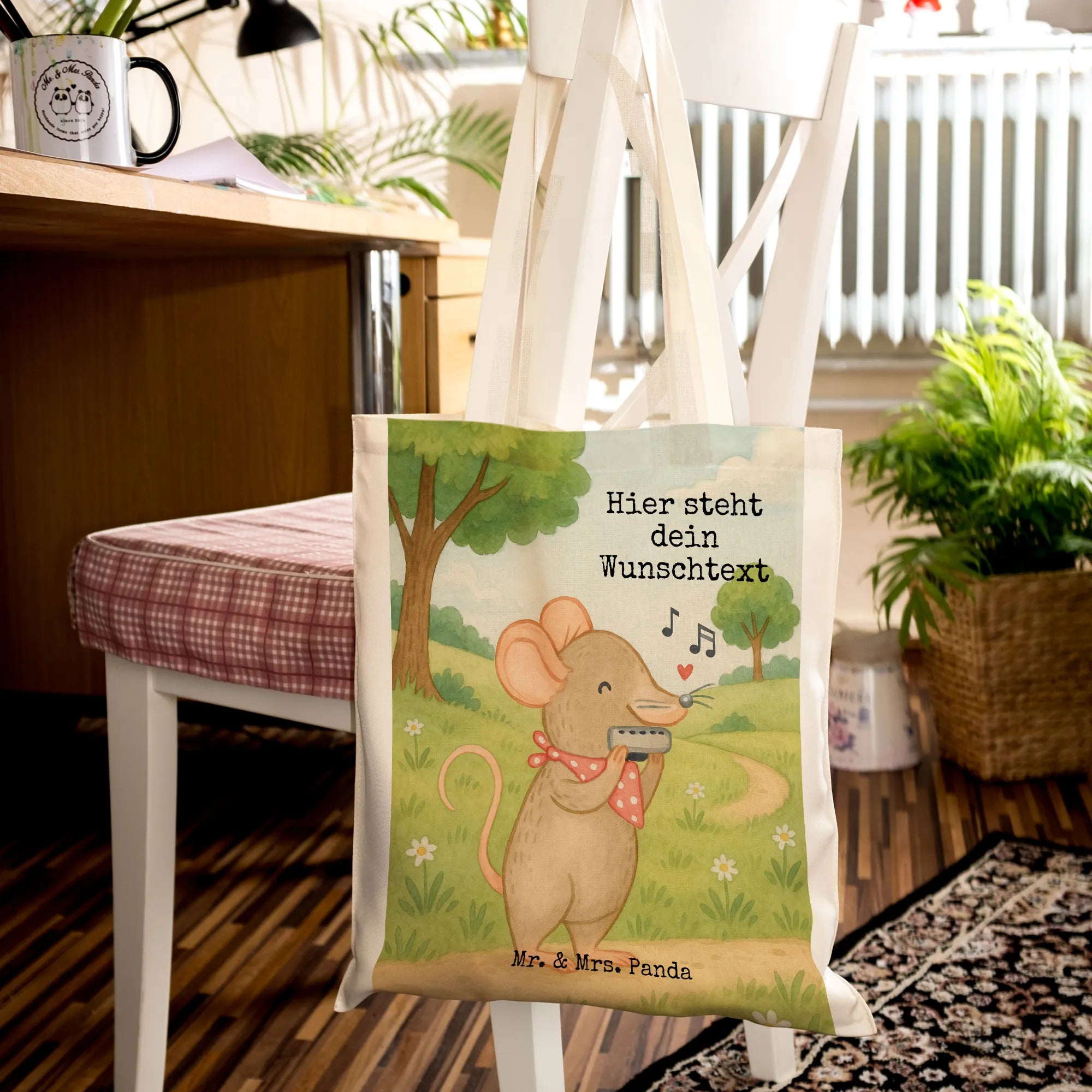 Personalisierte Tragetasche Maus Mundharmonika Design