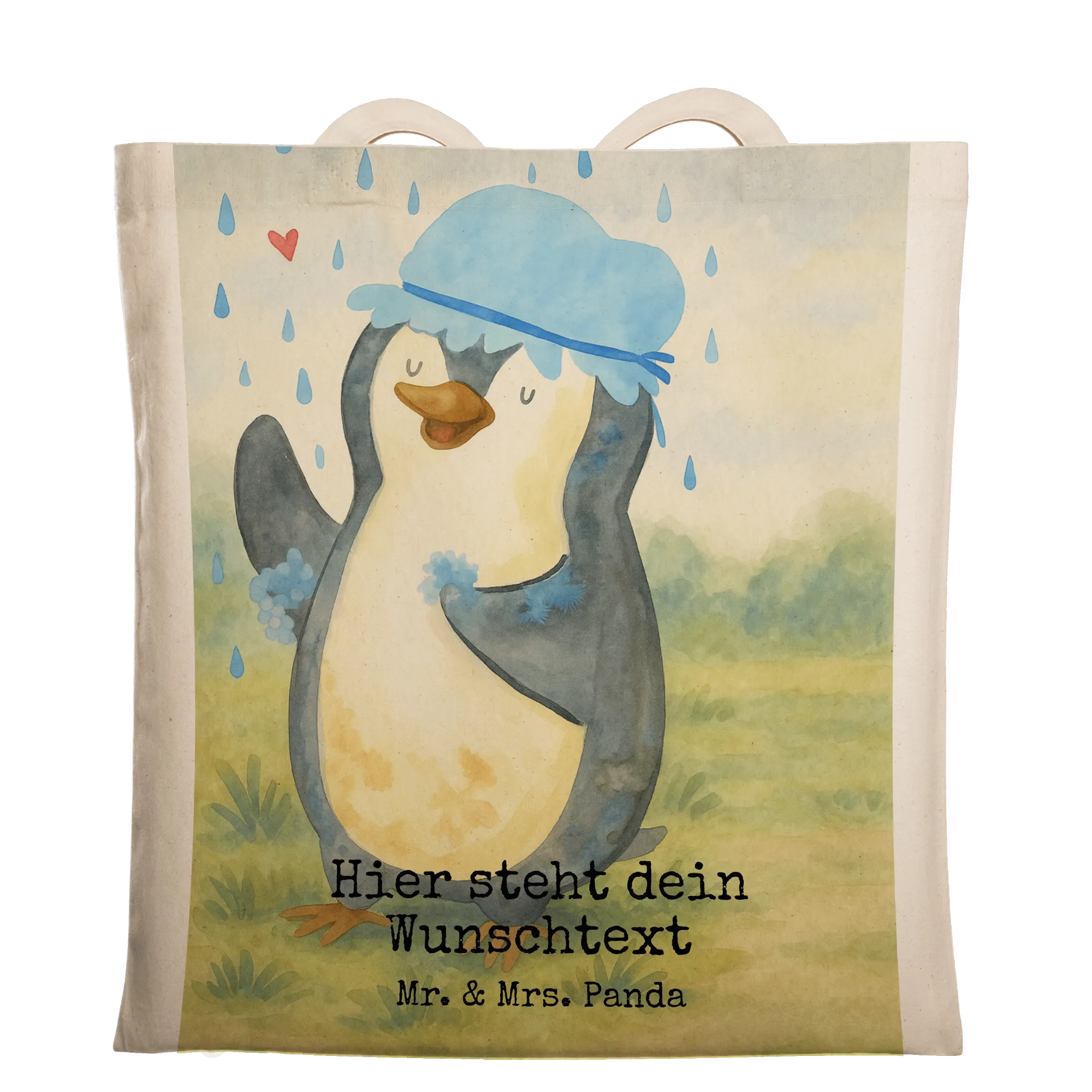 Personalisierte Tragetasche Pinguin Duschen Design