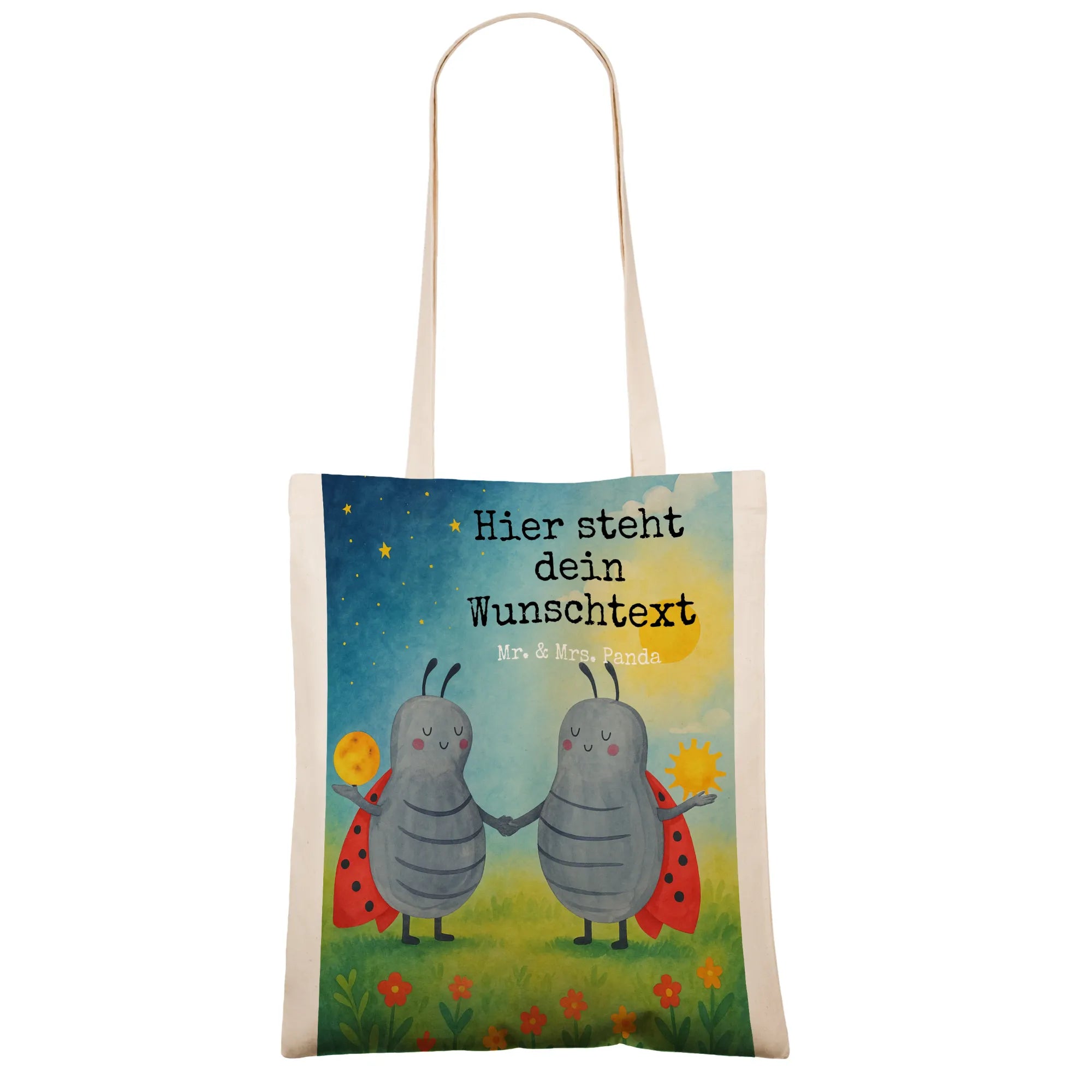 Hol dir die personalisierte Tragetasche von Mr. & Mrs. Panda und sei der Star beim Einkaufen! Diese trendige Tasche hat die perfekten Maß von 420 mm x 380 mm und ist aus 100% Baumwolle (140 g/m²) gefertigt. Wenn du sie mit deinem eigenen Namen oder einem besonderen Spruch personalisieren lässt, wird sie zu deinem einmaligen Lieblingsstück. Die nachhaltig produzierte Tasche hat umsäumte und verstärkte Innennähte, sodass sie lange ihre Form behält – egal, wie sehr du sie belädst. Die langen Tragegriffe (70 cm) sorgen für ein angenehmes Tragegefühl, sei es beim Einkaufen, am Strand oder im Alltag! Pflegehinweis: Für eine lange Lebensdauer empfehlen wir die Handwäsche in lauwarmem Wasser. Bring deinen persönlichen Stil zum Ausdruck mit dieser einzigartigen Statementbeutel!