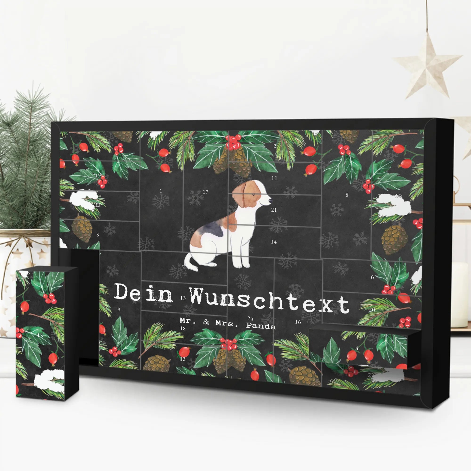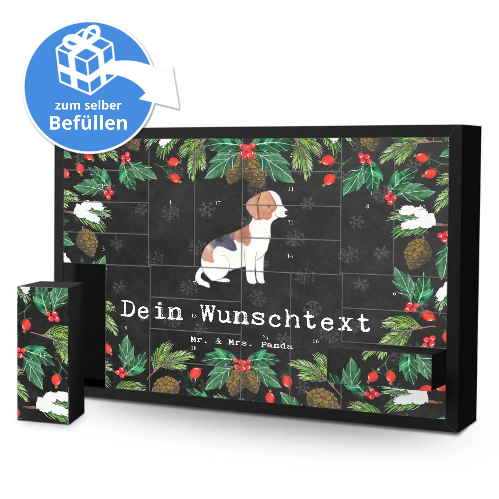 Der personalisierte, befüllbare Adventskalender "Foxhound Moment" von Mr. & Mrs. Panda ist das perfekte Geschenk für jeden Hundeliebhaber, insbesondere für Foxhound-Besitzer! Mit einer liebevollen Zeichnung eines Foxhounds auf der Frontseite und dem Slogan "Dankbar für jeden Moment mit meinem Foxhound" bereitet dieser Adventskalender jeden Tag im Advent zu einem besonderen Erlebnis.