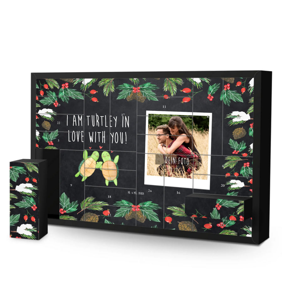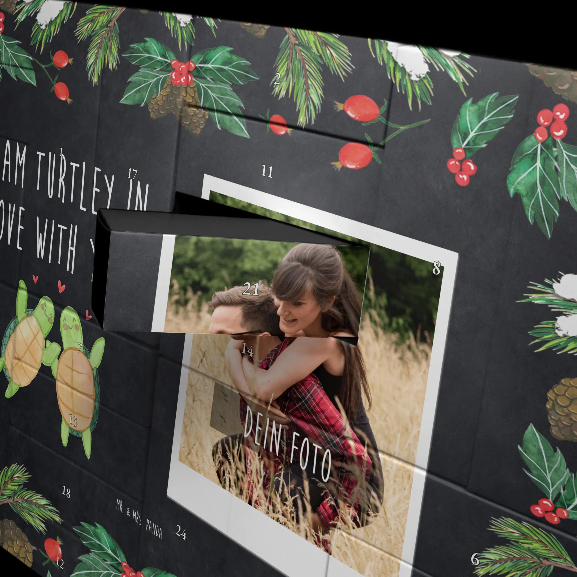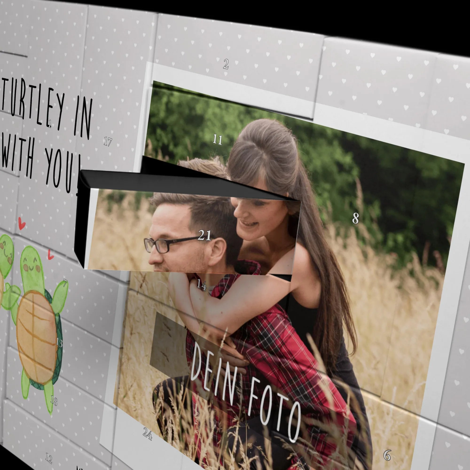 Der personalisierte befüllbare Foto Adventskalender mit dem süßen Motiv der Schildkröten von Mr. & Mrs. Panda ist das perfekte Geschenk für Verliebte. Egal ob zum Valentinstag, Hochzeitstag oder Jahrestag, dieser Adventskalender wird Euer Herz höher schlagen lassen. Mit liebevollen Illustrationen und dem süßen Spruch "I am turtley in love with you!" bringt er Freude und Liebe in die Vorweihnachtszeit.