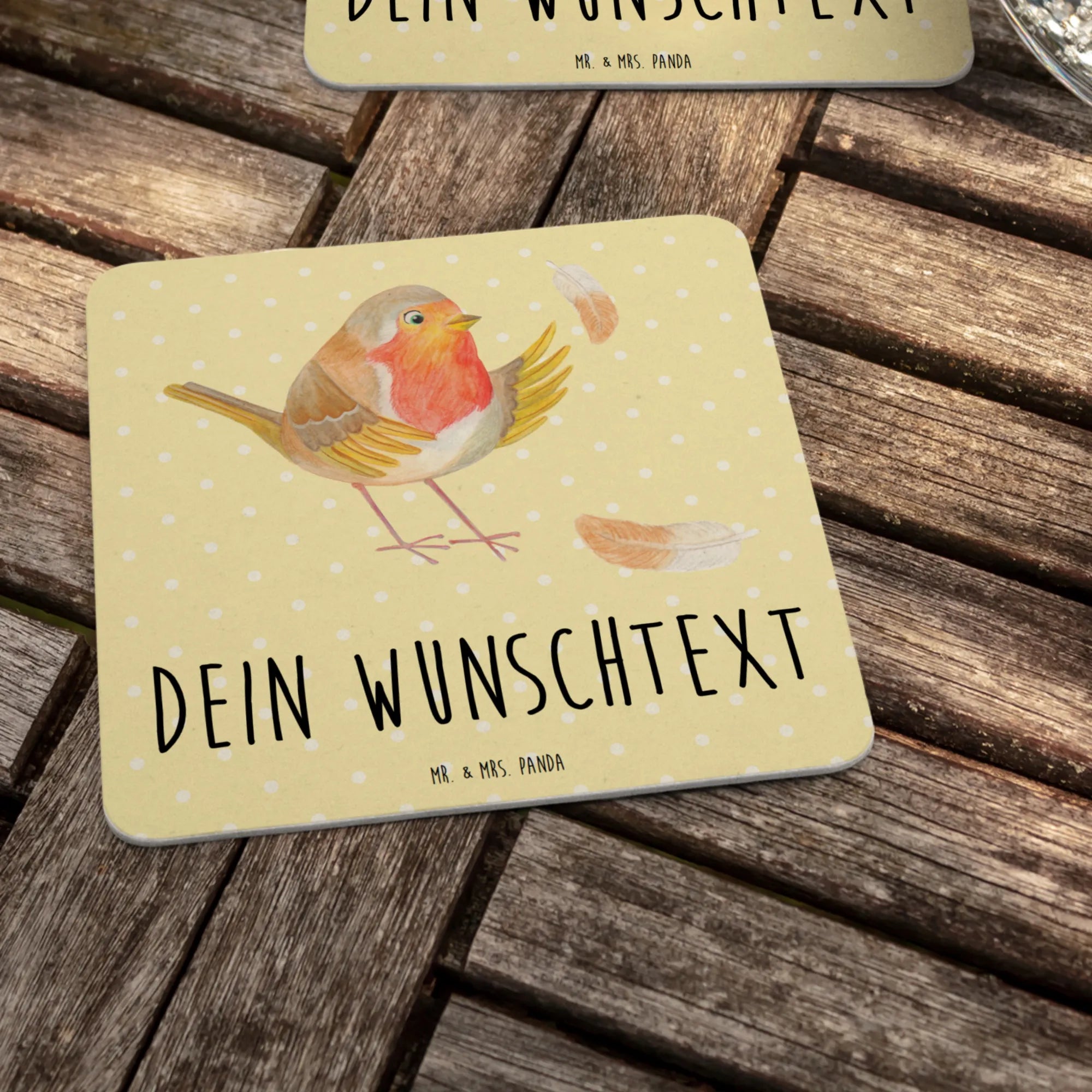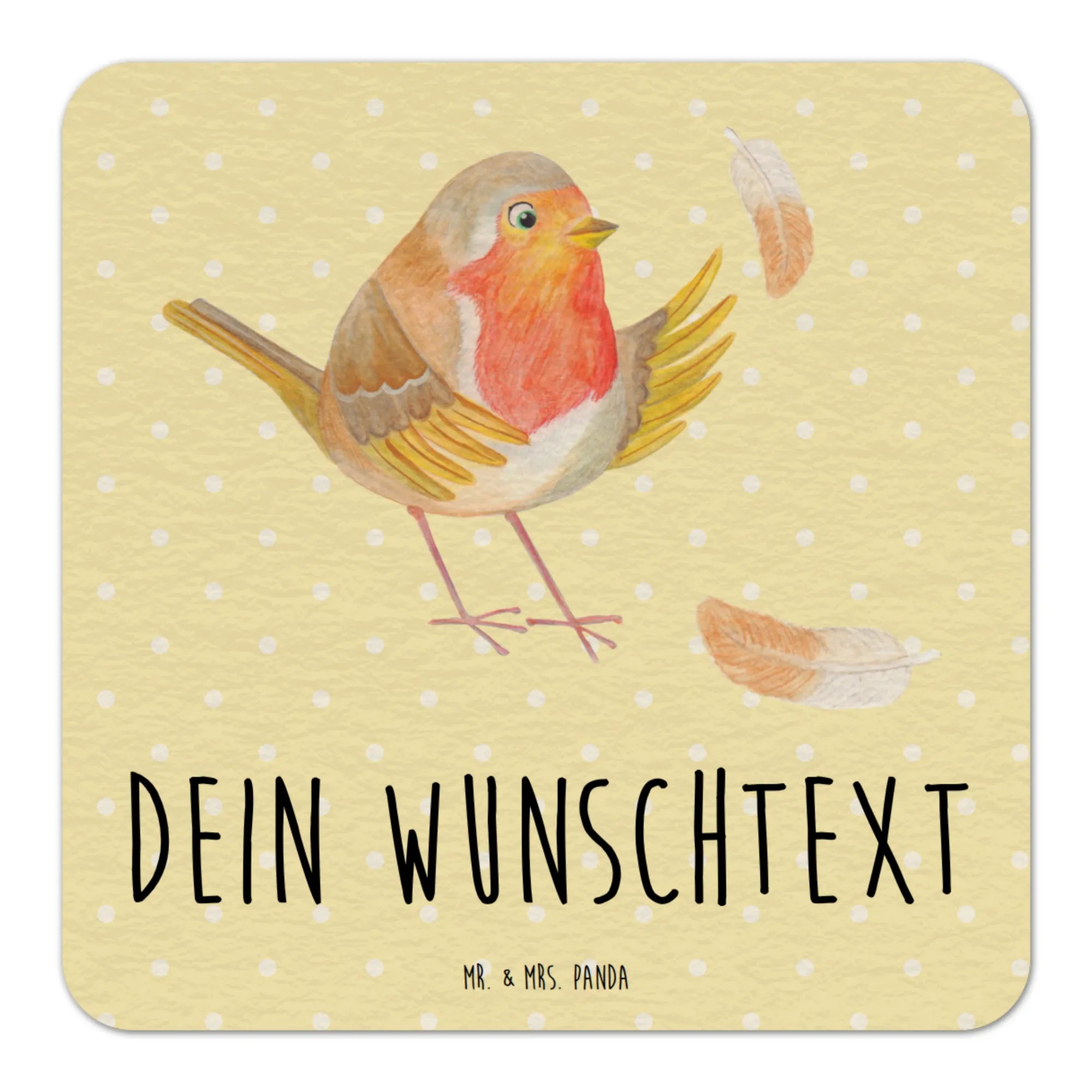 Personalisierter Bierdeckel Rotkehlchen Federn – Mr. & Mrs. Panda