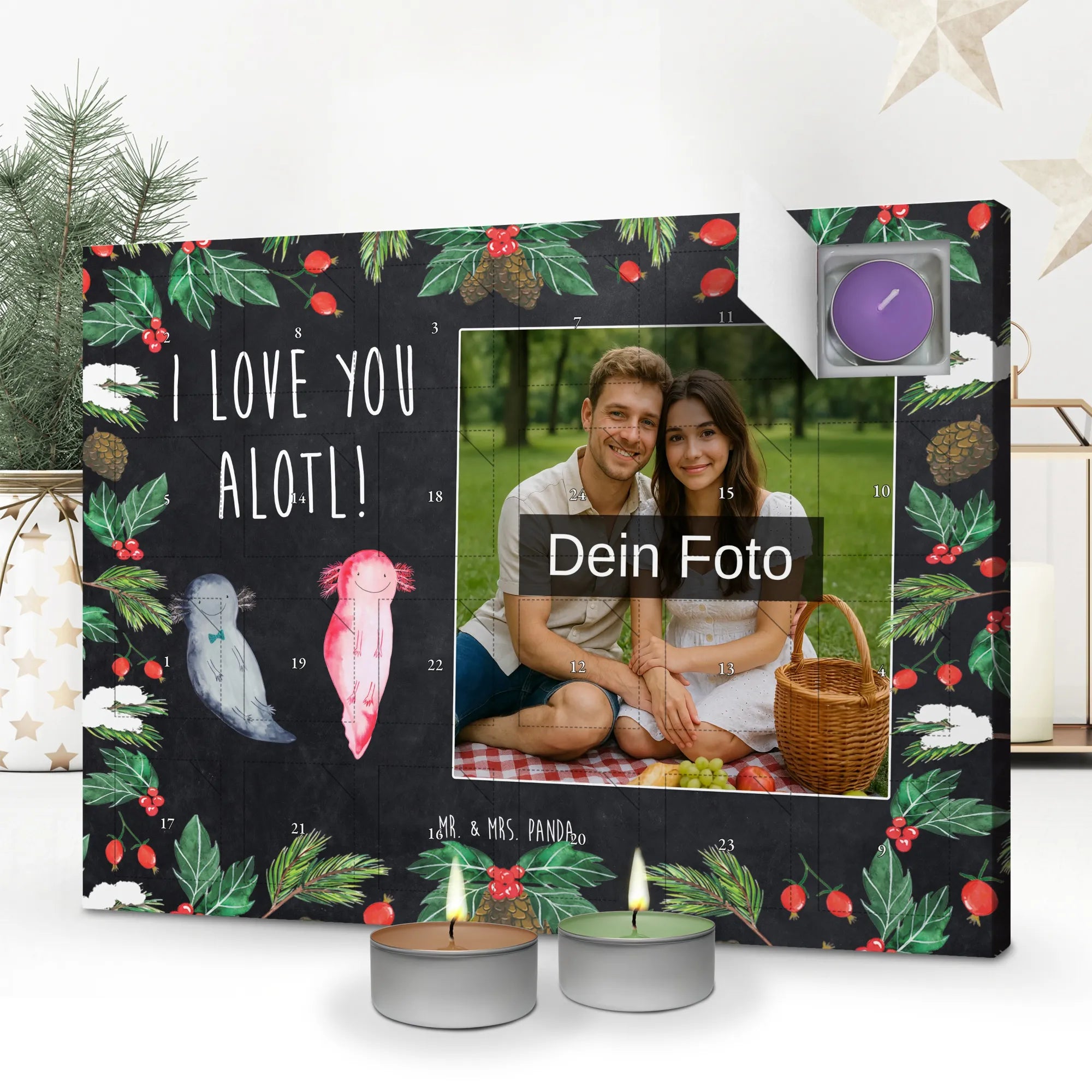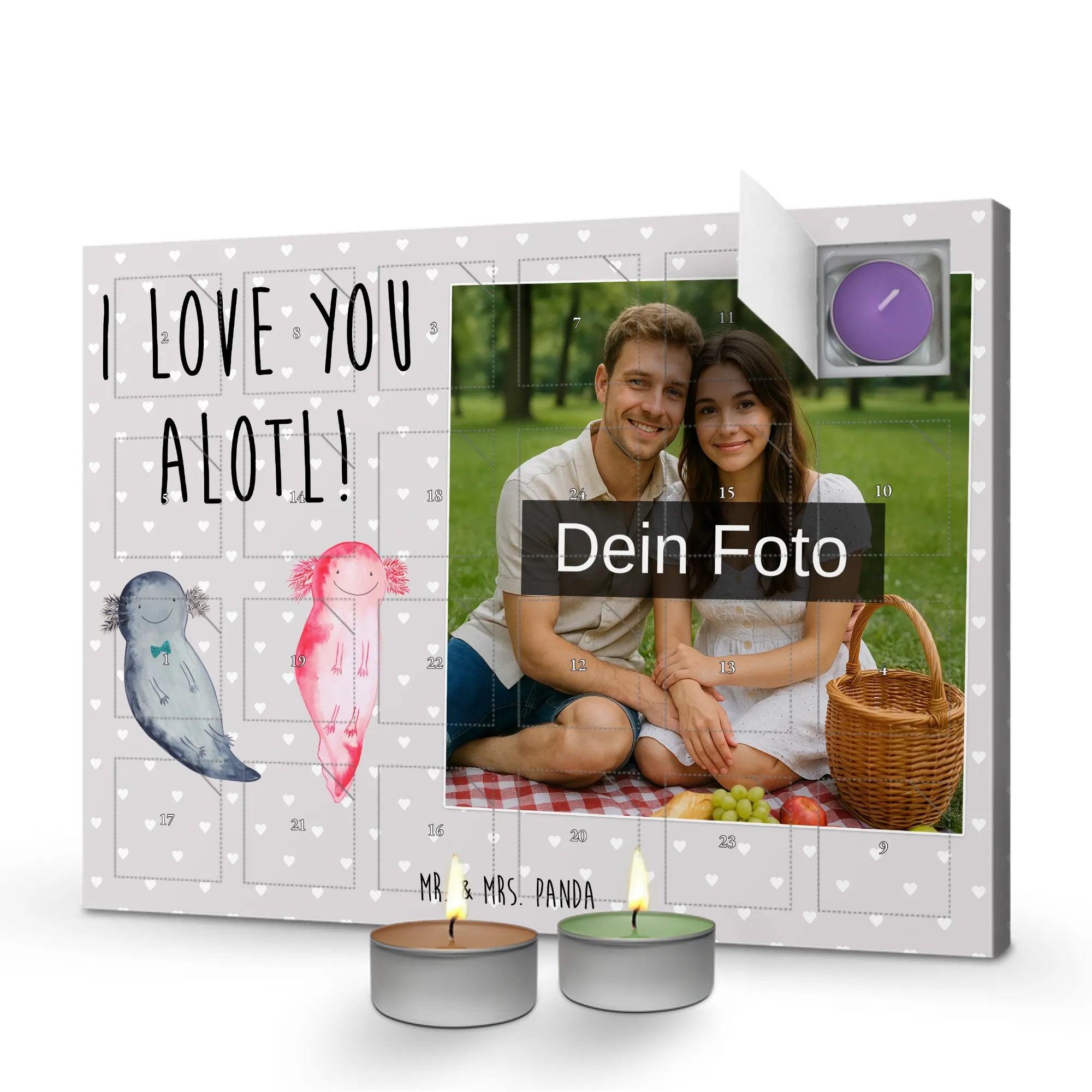 Personalisierter Duftkerzen Foto Adventskalender Axolotl Liebe – Mr. & Mrs. Panda