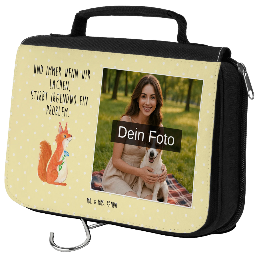 Personalisierter Foto Kulturbeutel Eichhörnchen Blume