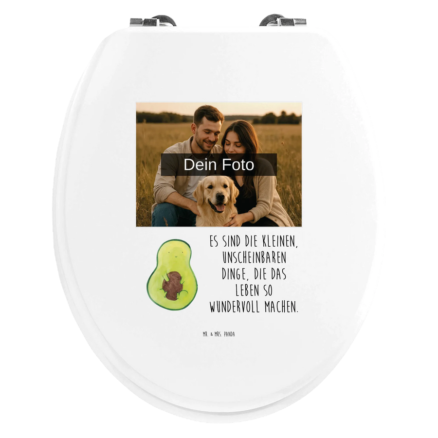 Erlebe die perfekte Kombination aus Stil und Komfort mit unserem personalisierten Foto WC Sitz Motiv von Mr. & Mrs. Panda! Mit den Maßen von 430 mm x 370 mm x 50 mm kommt dieser einzigartige Toilettensitz in zwei Varianten: hochwertigem Bambus Holz (braun) oder edlem MDF Holz (weiß). Der liebevoll gestaltete Sitz wird mit fröhlichen Motiven und Sprüchen bedruckt, die deinem Badezimmer eine besondere Note verleihen. Und das Beste? Du kannst ihn ganz nach deinem Geschmack mit deinem Wunschfoto gestalten! Achte darauf, dass das hochgeladene Bild in hoher Auflösung ist, um eine optimale Druckqualität zu garantieren. Achte darauf, dass der Bildausschnitt stimmt, damit alles gut zur Geltung kommt. Passend für alle Euro-WC-Becken und inkl. Montageset, bietet dieser WC Sitz nicht nur hohen Sitzkomfort, sondern macht dein Bad auch zu einem echten Hingucker. Vor allem an kalten Tagen kannst du den angenehmen Komfort genießen. Pflege ihn einfach mit einem feuchten Tuch und milder Seife – so bleibt er lange schön! Mit einem langlebigen UV-Druck bleibt dein persönliches Motiv immer strahlend! Leg dir jetzt diesen besonderen Toilettensitz zu und gestalte dein Bad nach deinen Vorstellungen!