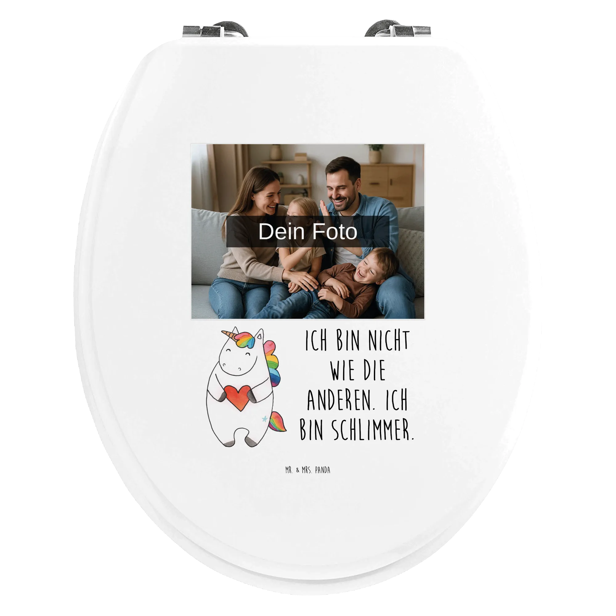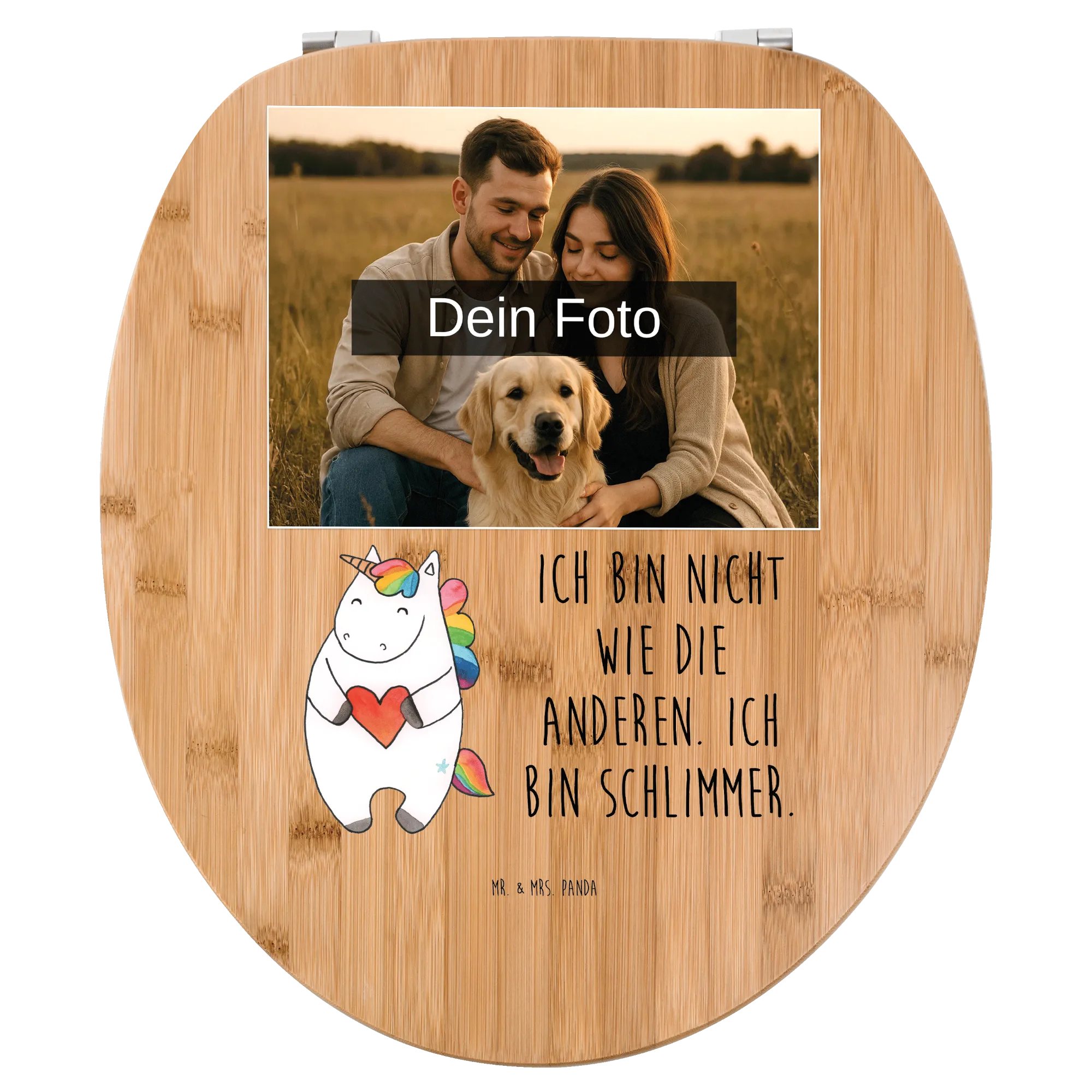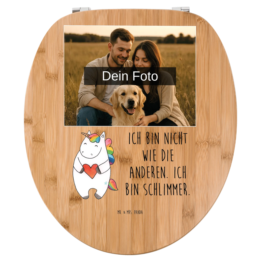 Personalisierter Foto WC Sitz Motiv Einhorn Herz - Bambus