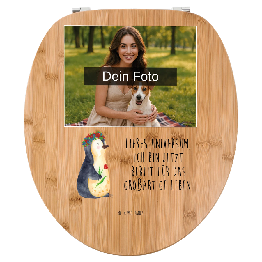 Personalisierter Foto WC Sitz Motiv Pinguin Blumen - Bambus