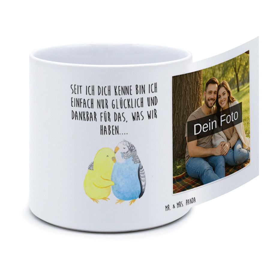 Personalisierter Foto XL Blumentopf Wellensittich Liebe – Mr. & Mrs. Panda