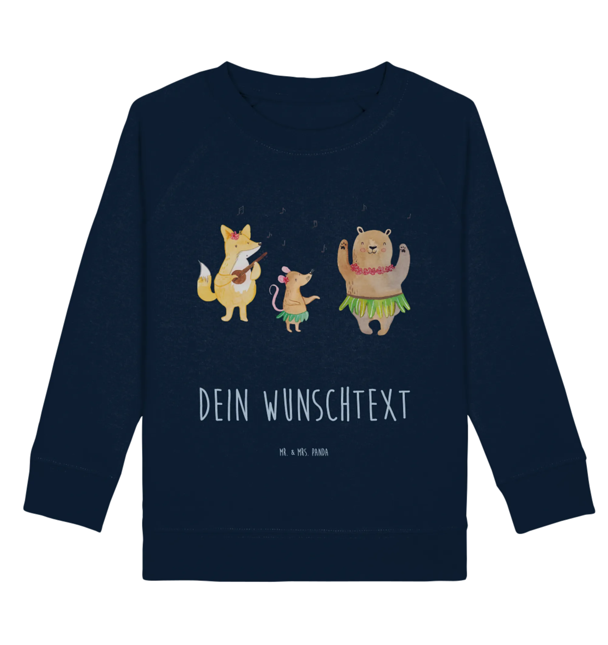 Familie, Freunde und Bekannte werden die kreative Idee hinter diesem lustigen Pullover schätzen und die fröhlichen Motive sorgen für Gesprächsstoff und Lächeln. Mache deinem Kind eine Freude und wähle den personalisierten Kinder Pullover "Waldtiere Aloha" von Mr. & Mrs. Panda – weil Lachen das schönste Geschenk ist!