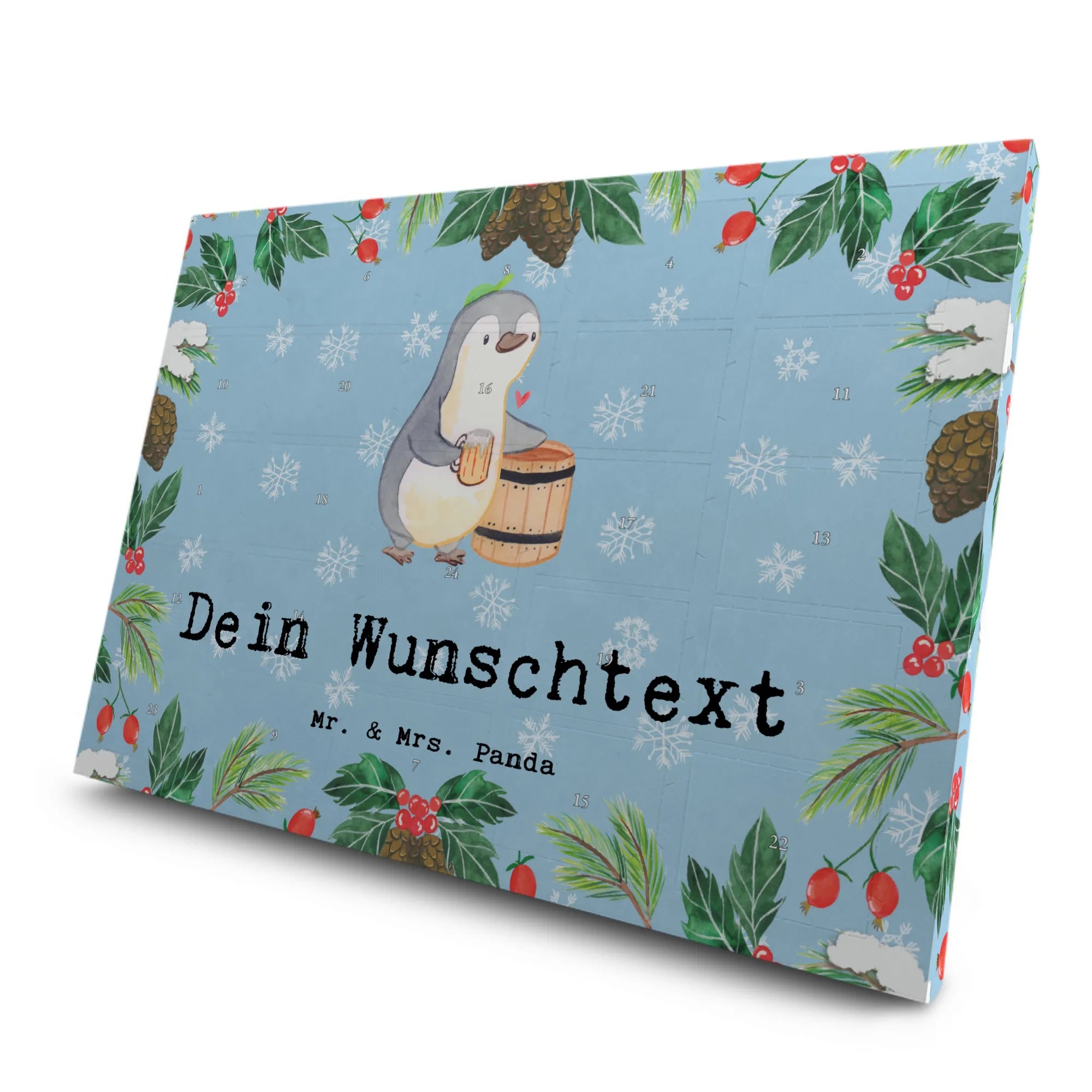 Dieser personalisierte Tee Adventskalender ist das perfekte Geschenk für alle Bierbrauer und Bierliebhaber! Mit dem wunderschönen Motiv "Bierbrauer aus Leidenschaft" von Mr. & Mrs. Panda zauberst du jedem Bierkenner ein Lächeln ins Gesicht. Umgeben von einem niedlichen Pinguin, der stolz mit einem Bierglas posiert, wird dieser Adventskalender zum idealen Begleiter zur Weihnachtszeit.