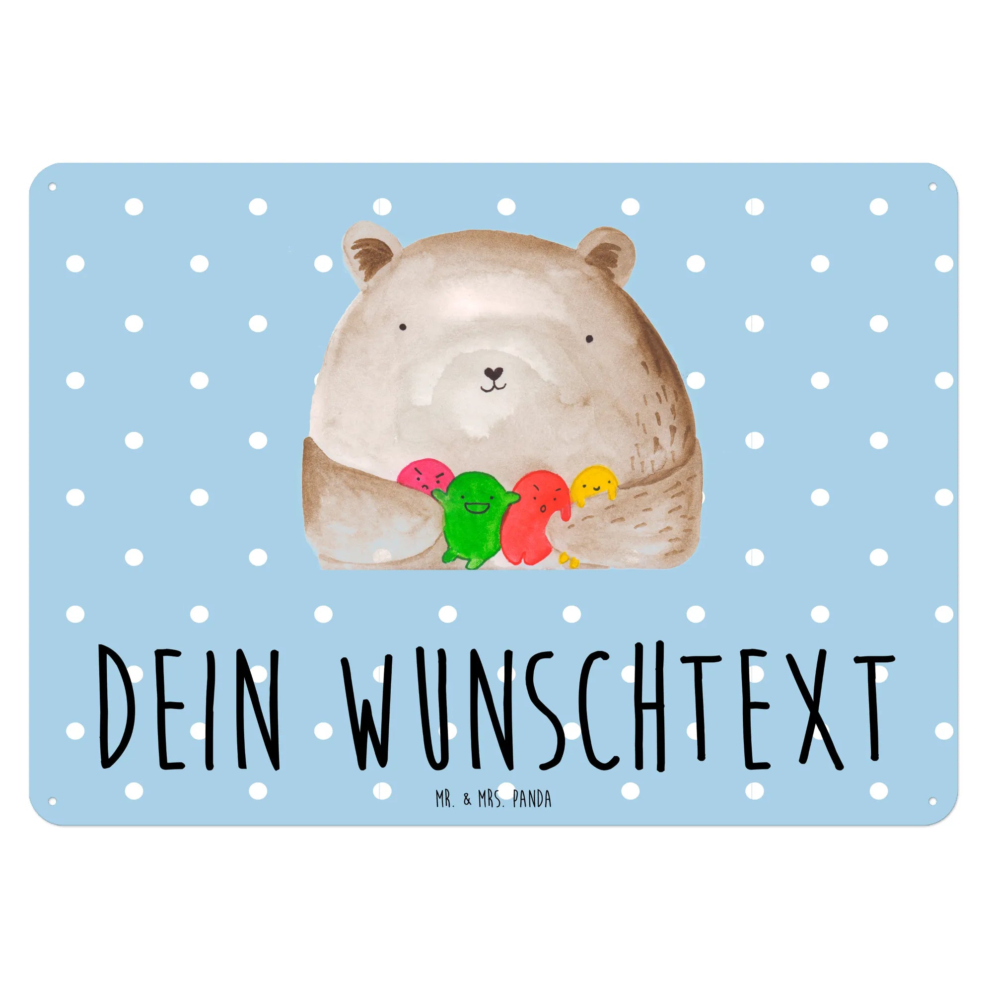 Das personalisierte Blechschild mit dem süßen Bär Gefühl-Motiv von Mr. & Mrs. Panda ist das perfekte Geschenk für jeden, der Bären und liebevolle Dekorationen liebt. Egal, ob du es für dich selbst oder für einen besonderen Menschen in deinem Leben kaufst, dieses Schild bringt Freude und Wärme in jedes Zuhause. Mit einem originellen Design, das einen niedlichen Bären zeigt, der viele bunte Kugeln in seinen Händen hält und dabei seine tiefsten Gefühle ausdrückt, ist dieses Schild ein wahrer Hingucker. Die bunten Farben erzählen Geschichten von Liebe, Freundschaft, Sehnsucht und sogar Trauer - perfekt für jeden Anlass!