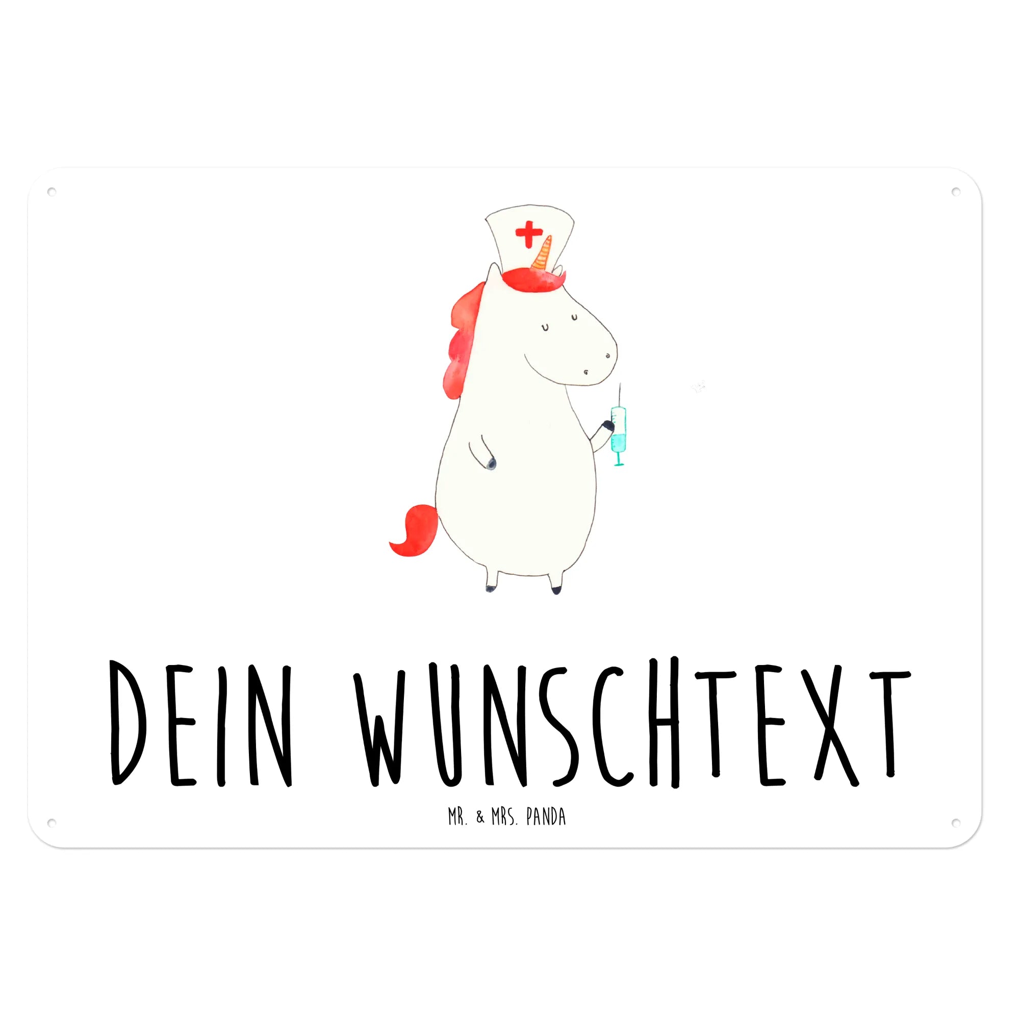 Das personalisierte Blechschild "Einhorn Krankenschwester" aus der zauberhaften Einhorn-Kollektion von Mr. & Mrs. Panda ist das perfekte Geschenk für alle, die Krankenschwestern oder Krankenpfleger in ihrem Leben wertschätzen.
