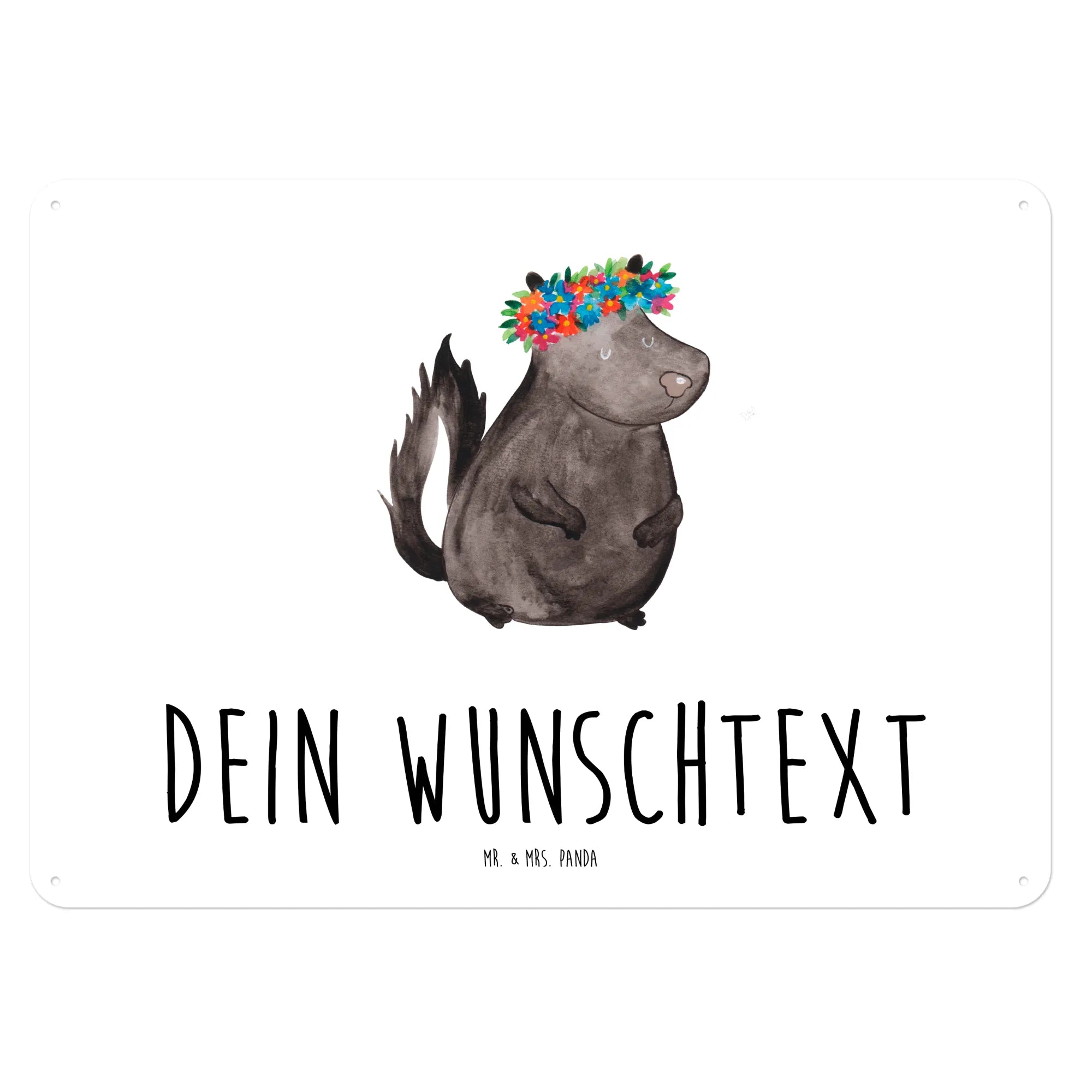 Das personalisierte Blechschild 'Stinktier Blumenmädchen' aus der Stinktier-Kollektion von Mr. & Mrs. Panda ist der perfekte Blickfang für dein Zuhause.