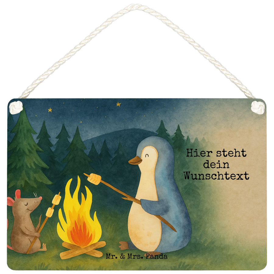 Personalisiertes Deko Schild Pinguin Lagerfeuer Design – Mr. & Mrs. Panda