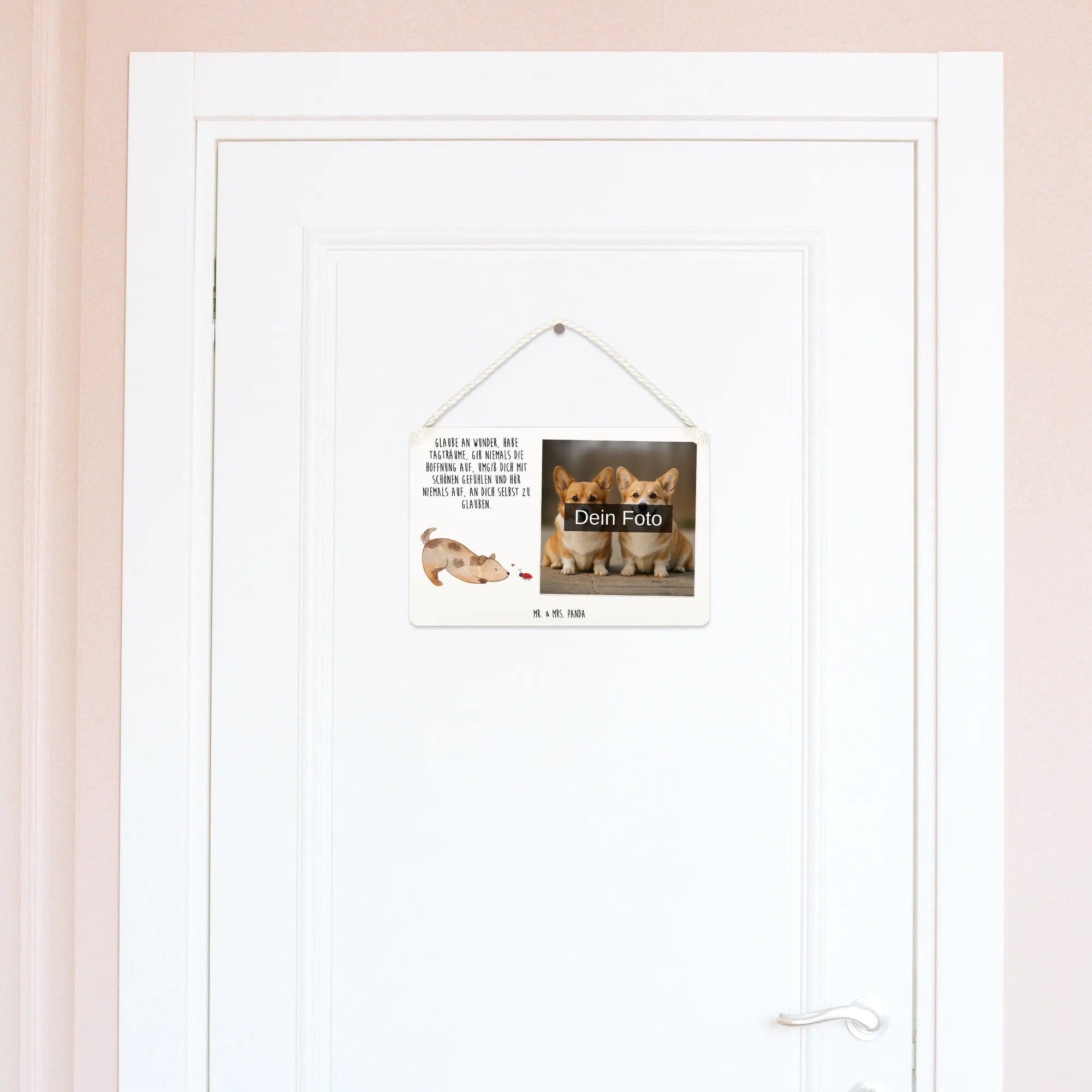 Verleih deinem Zuhause einen besonderen Charme mit unserem personalisierten Foto Deko Schild von Mr. & Mrs. Panda. Dieses edel gestaltete Schild hat die Maße 148 mm x 105 mm und lässt sich individuell mit deinem Lieblingsfoto personalisieren. Bedruckt mit den bezaubernden Sprüchen und Designs von Mr. & Mrs. Panda, wird es schnell zum Highlight jeder Wand oder Tür. Bitte achte darauf, dass das hochgeladene Foto eine hohe Auflösung hat, um ein perfektes Druckergebnis zu garantieren. Es ist langlebig und eignet sich super als Geschenk. Mit der eleganten Kordel wird das Aufhängen zum Kinderspiel! Stelle deine Erinnerungen oder Wegweiser stilvoll zur Schau und bring ein Stück Freude in dein Zuhause!