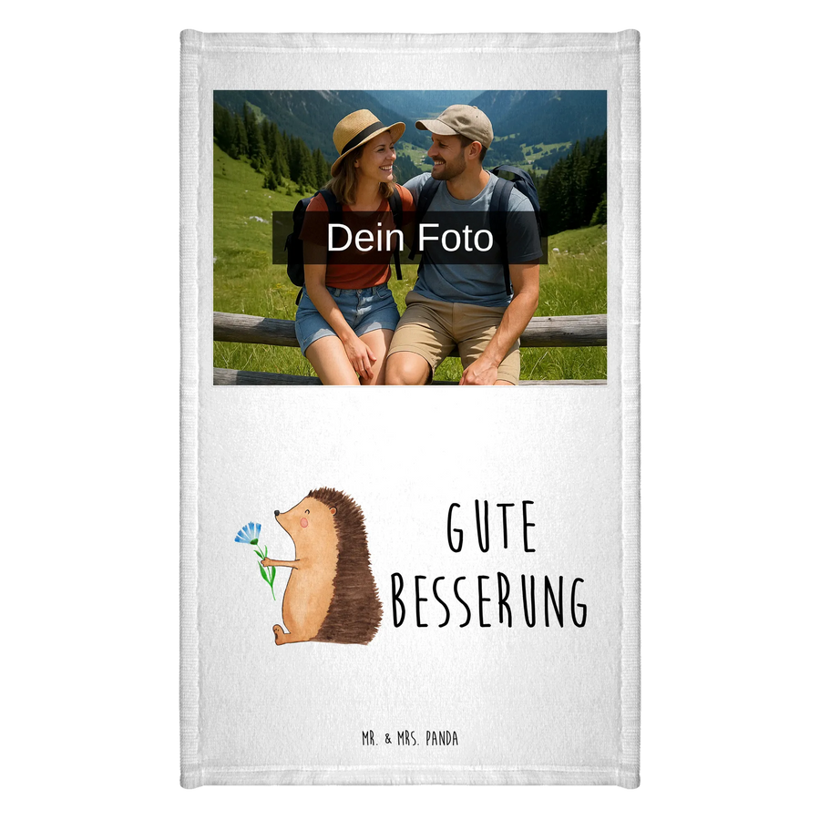 Personalisiertes Foto Gästehandtuch Igel Blumen