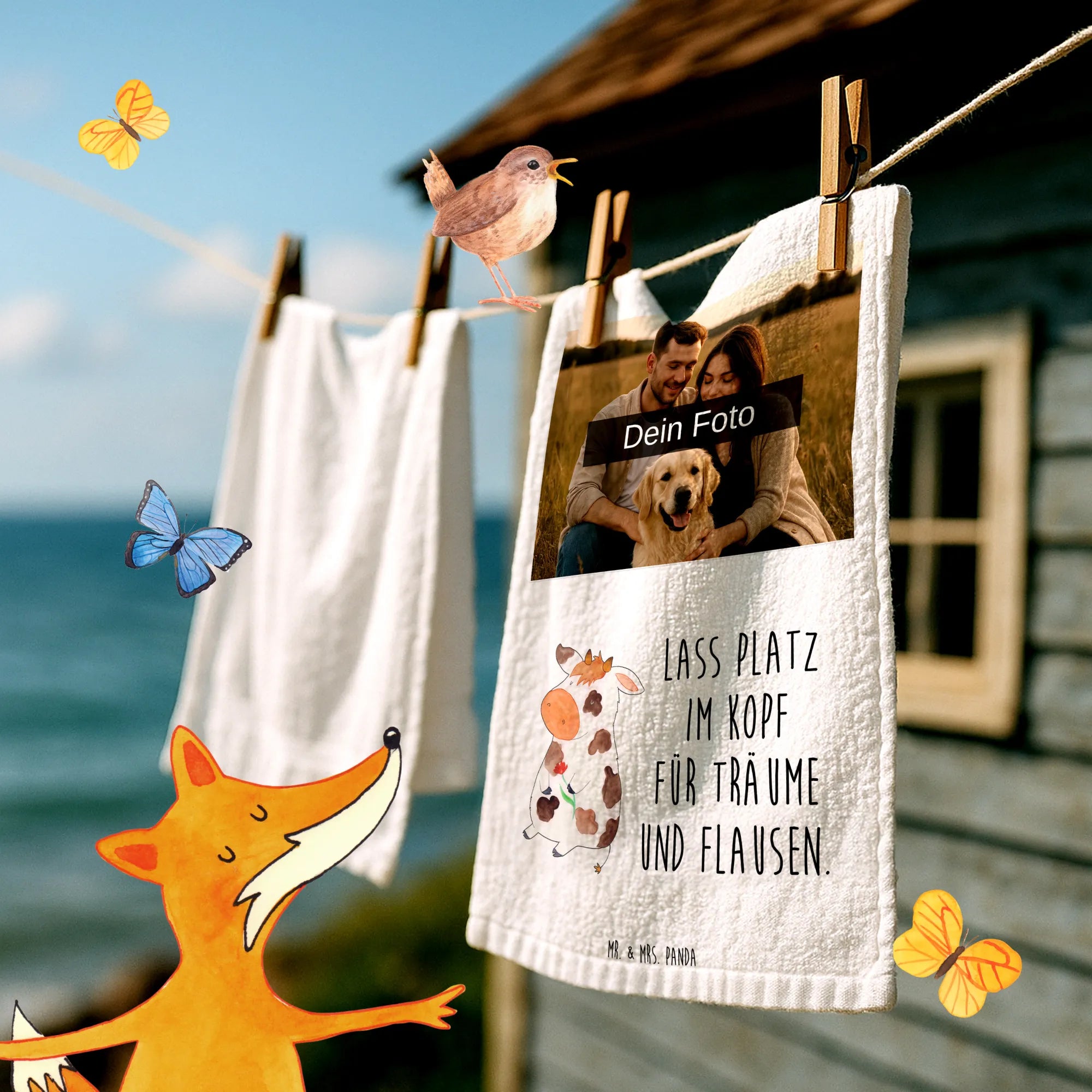 Verschönere dein Bad mit dem personalisierten Foto Gästehandtuch von Mr. & Mrs. Panda! Mit einer Größe von 300 mm x 500 mm ist es perfekt für jedes Gäste-WC geeignet. Hochwertig bedruckt mit fröhlichen Motiven und Sprüchen, bringt es gute Laune in dein Badezimmer. Lass deine Freunde durch dein ganz persönliches Wunschfoto staunen – achte nur darauf, dass das Bild eine hohe Auflösung hat! Das Handtuch fühlt sich super weich an, da es aus einer komfortablen Baumwollmischung besteht. Es ist nicht nur schick, sondern auch praktisch, denn es kann bei 30°C in der Maschine gewaschen werden. Mach dein Badezimmer einzigartig mit diesem tollen Handtuch, welches sich auch perfekt als Geschenk eignet!
