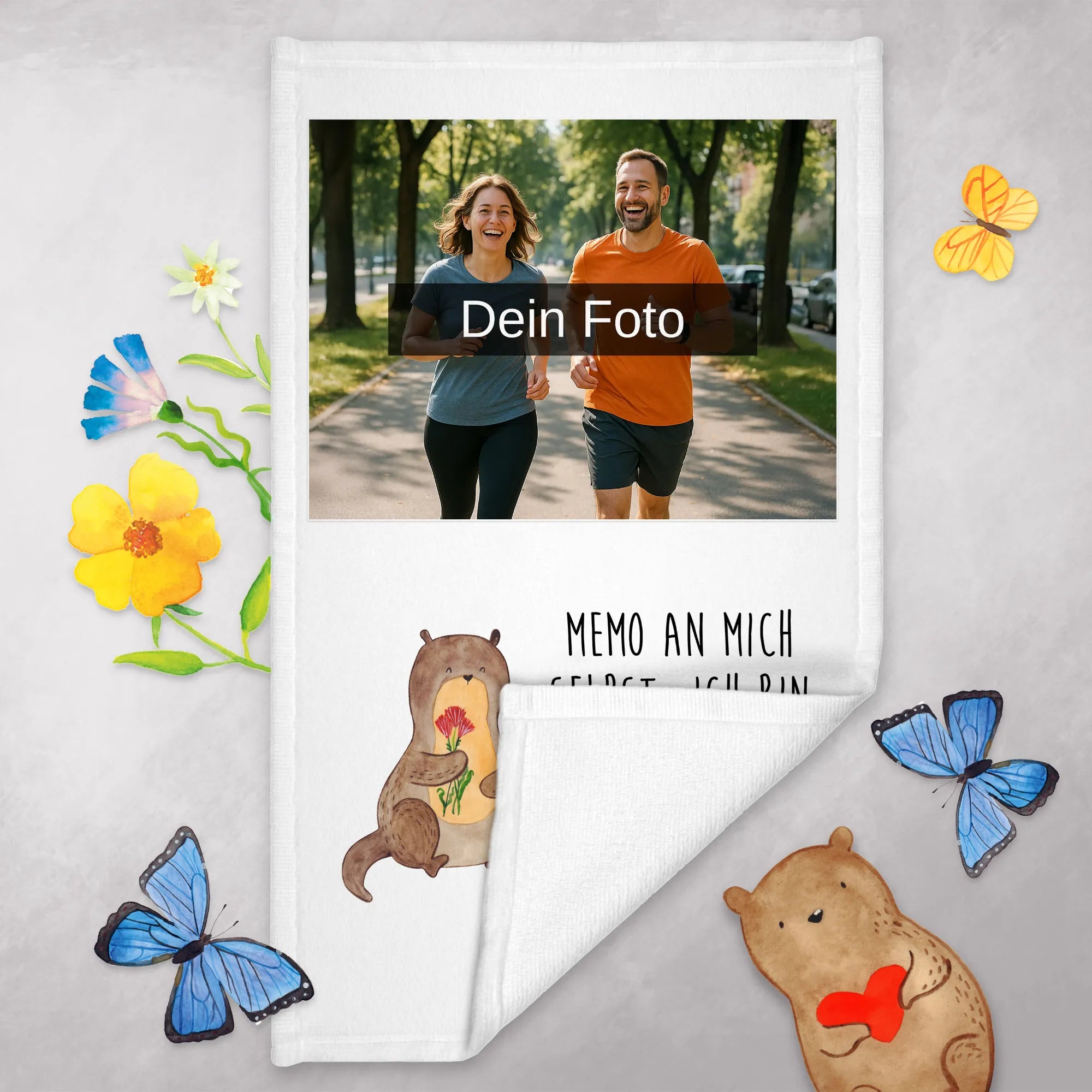Personalisiertes Foto Gästehandtuch Otter Blumenstrauß