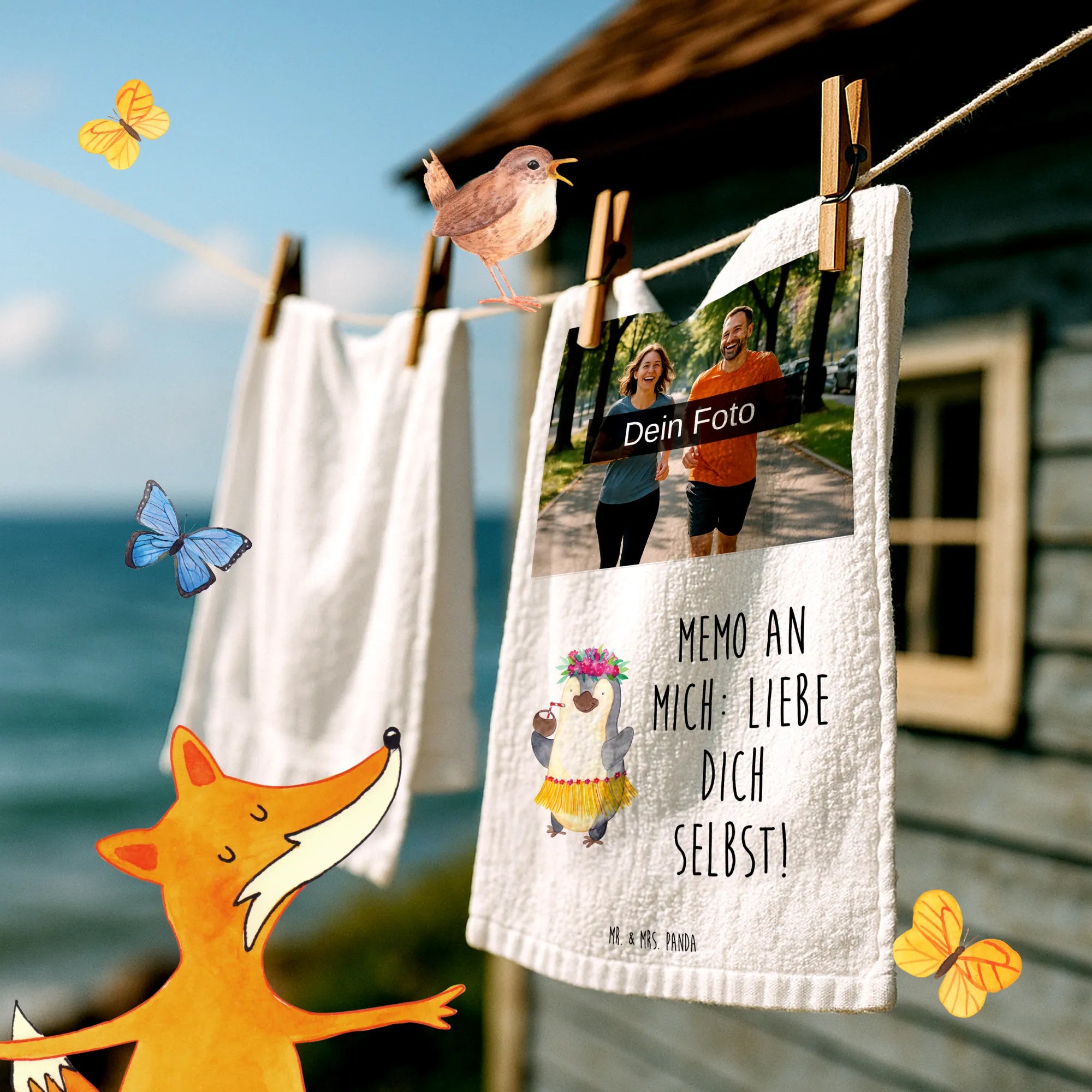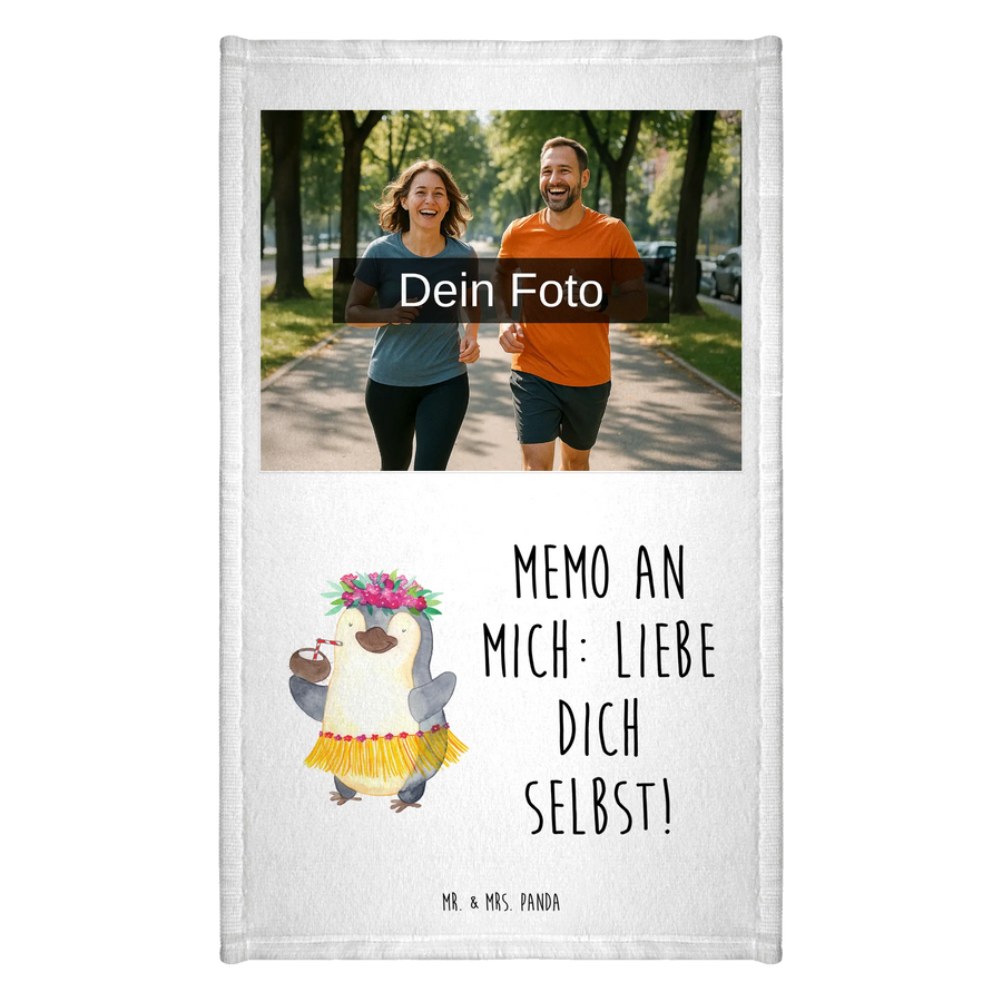 Personalisiertes Foto Gästehandtuch Pinguin Kokosnuss – Mr. & Mrs. Panda