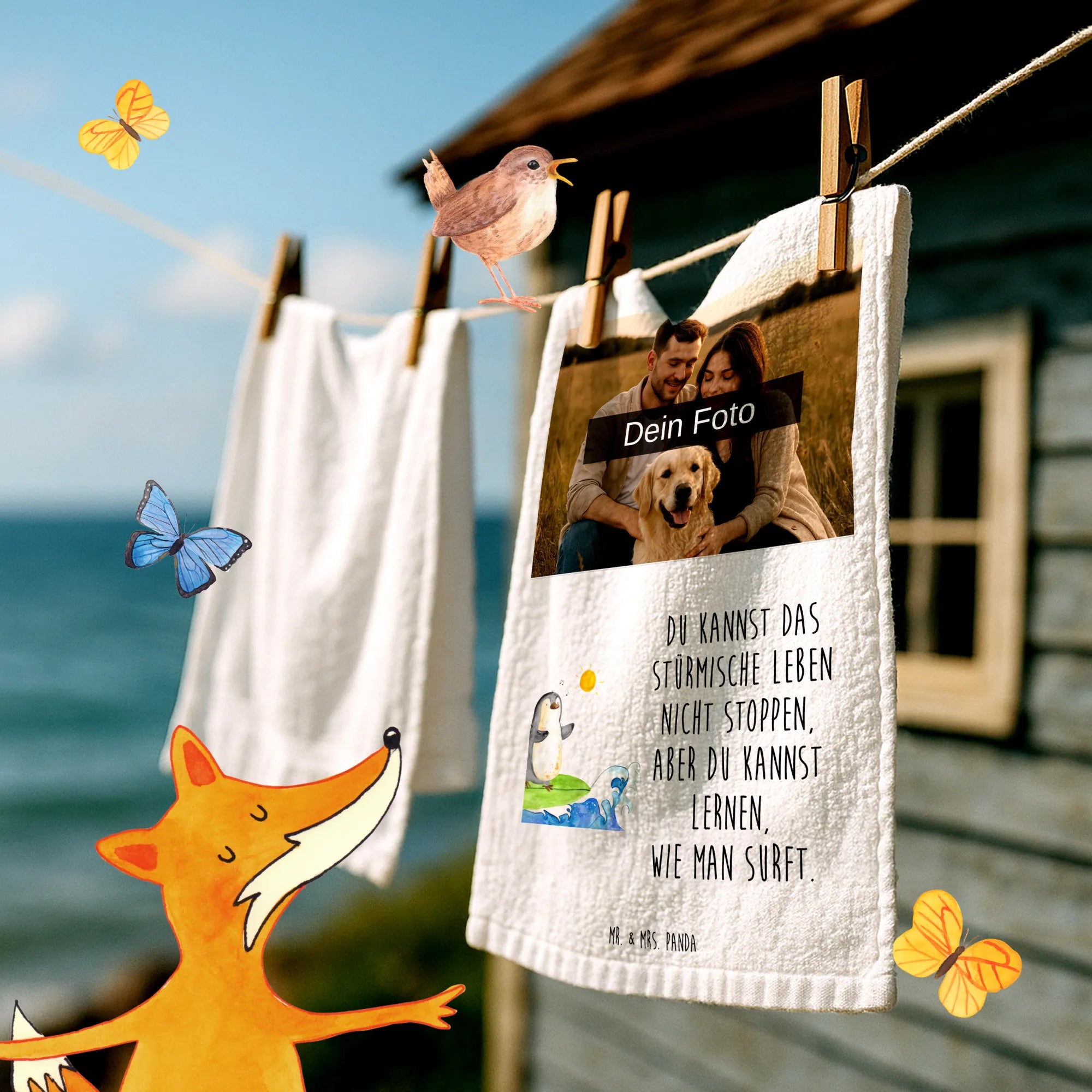 Personalisiertes Foto Gästehandtuch Pinguin Surfer
