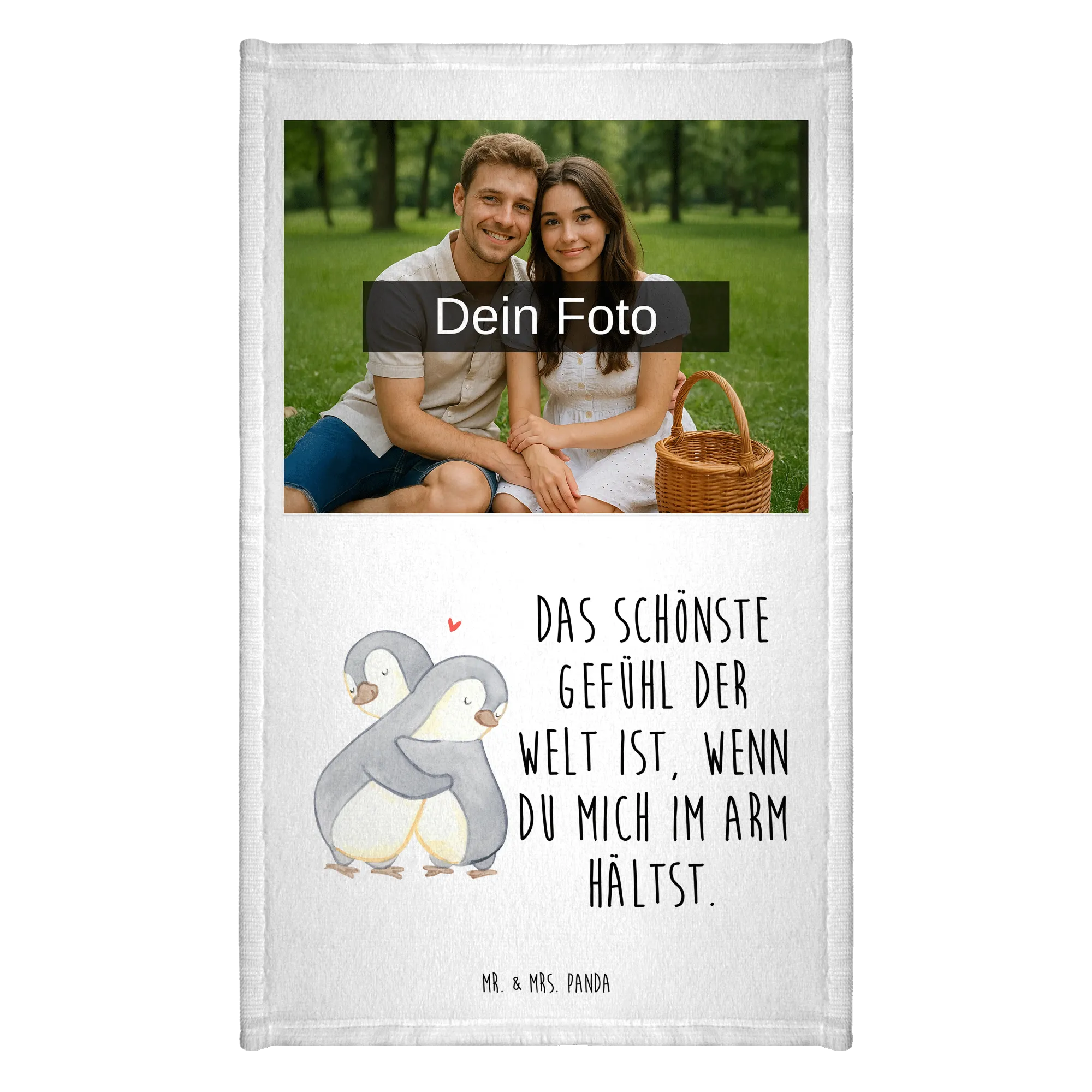 Personalisiertes Foto Gästehandtuch Pinguine Kuscheln
