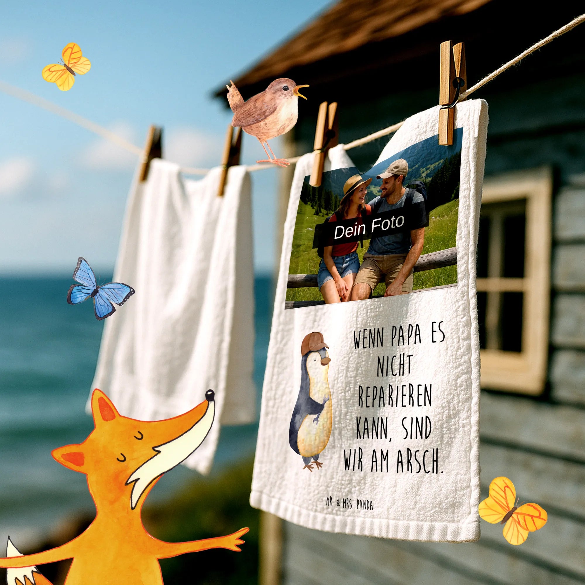 Personalisiertes Foto Gästehandtuch Wenn Papa es nicht reparieren kann – Mr. & Mrs. Panda