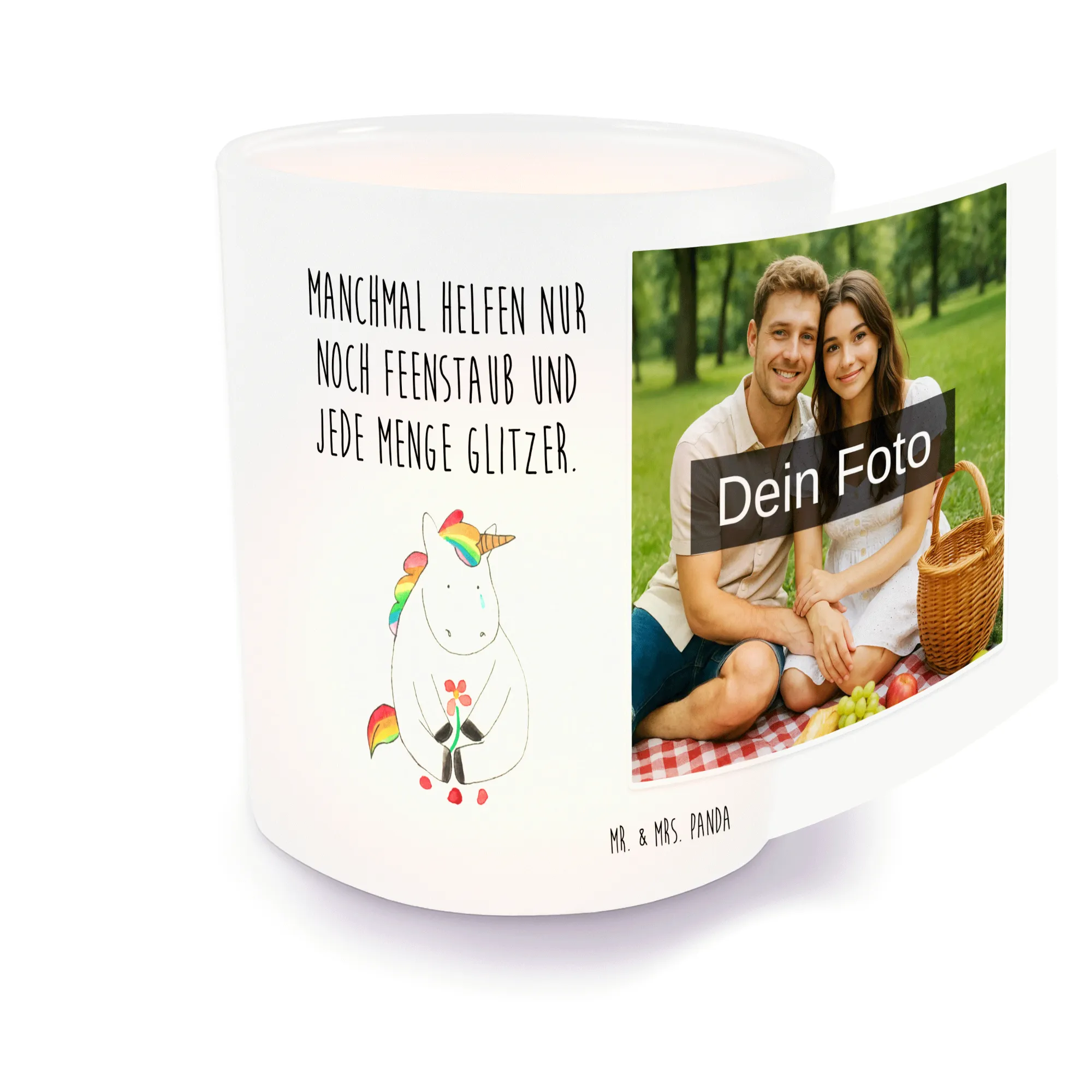 Personalisiertes Foto Windlicht Einhorn Traurig