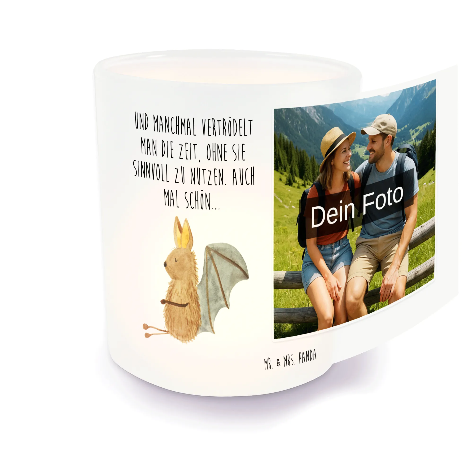 Verleihe deinem Zuhause eine persönliche Note mit unserem personalisierten Foto Windlicht von Mr. & Mrs. Panda! Dieses stilvolle Windlicht ist aus satiniertem Glas hergestellt und hat eine Größe von 70 mm x 80 mm. Du kannst es individuell mit einem Foto deiner Wahl gestalten. Achte darauf, dass dein Bild in hoher Auflösung vorliegt, damit die Details perfekt zur Geltung kommen. Überprüfe vor dem Hochladen den Bildausschnitt, damit nichts Wichtiges verloren geht. Das Windlicht ist perfekt für Teelichter und hält sie zuverlässig vor Wind geschützt. Es schafft eine warme Atmosphäre und ist ideal für romantische Abende oder besondere Anlässe. Pflege dein Windlicht mit sanfter Handwäsche, um seine Schönheit zu bewahren. Mach dein Zuhause noch schöner – mit einem einzigartigen Lichtspiel!