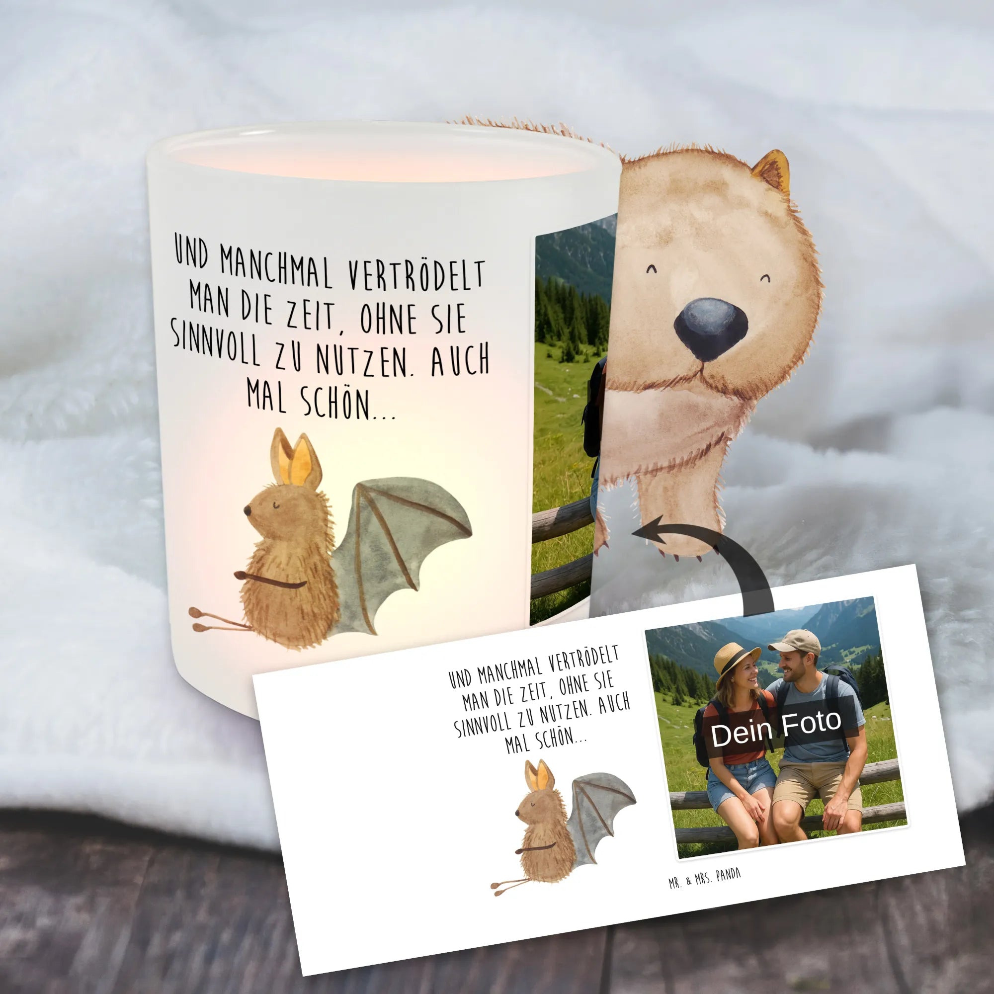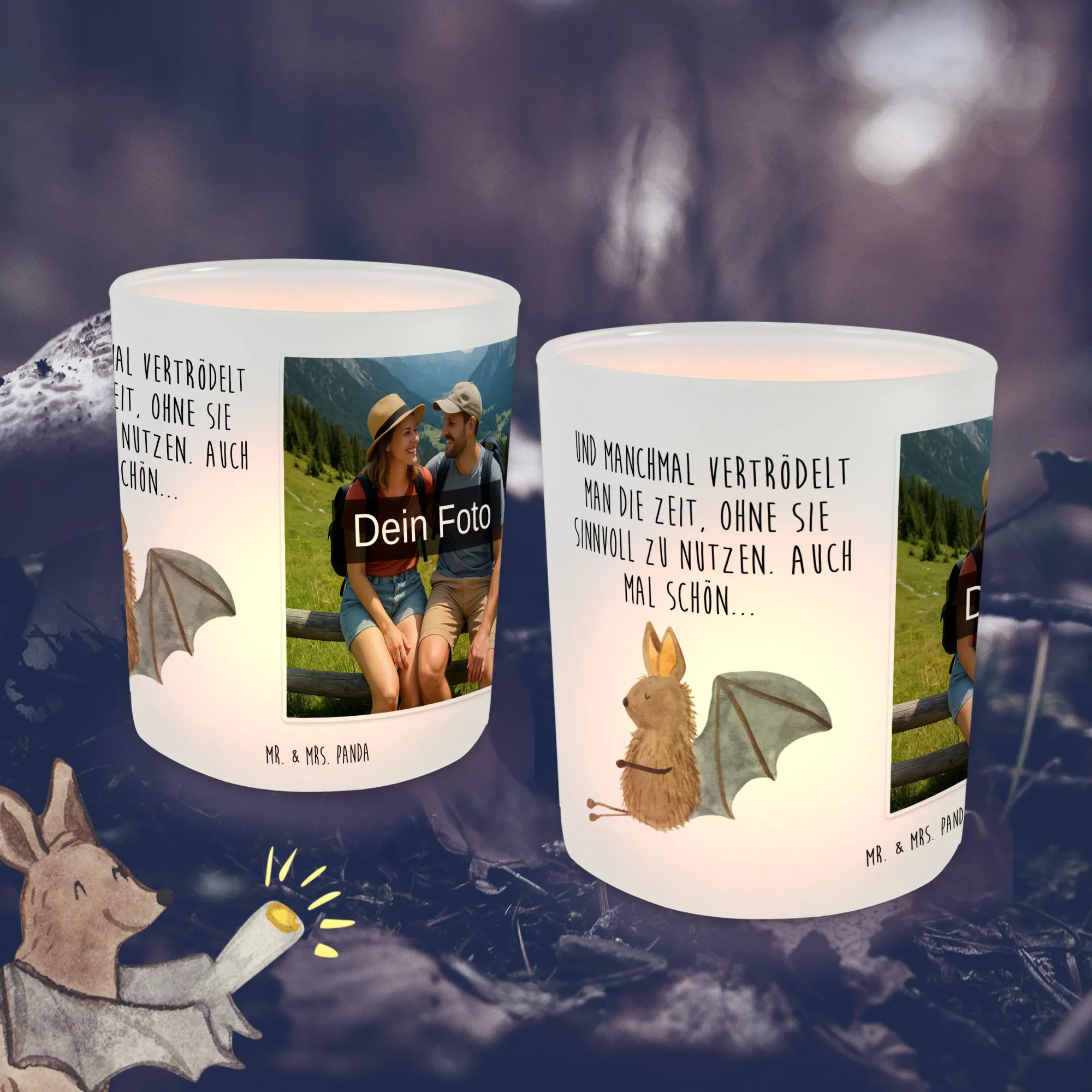 Personalisiertes Foto Windlicht Fledermaus Sitzen