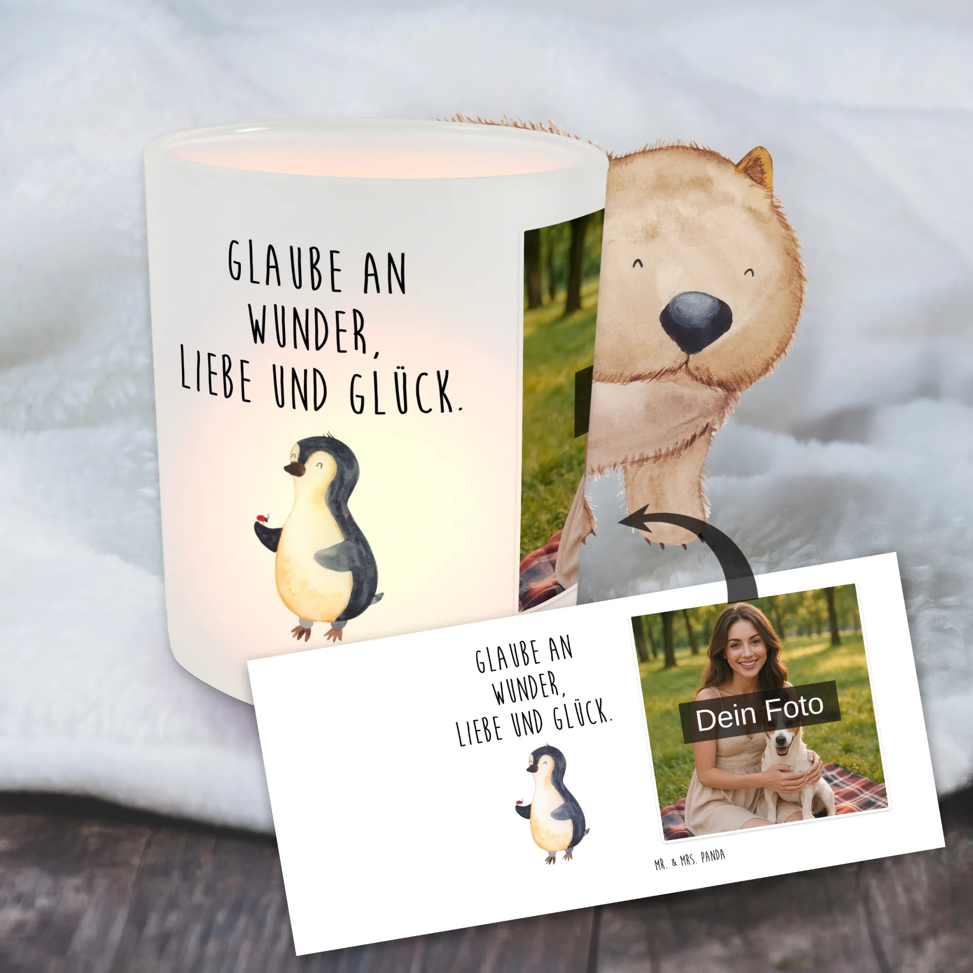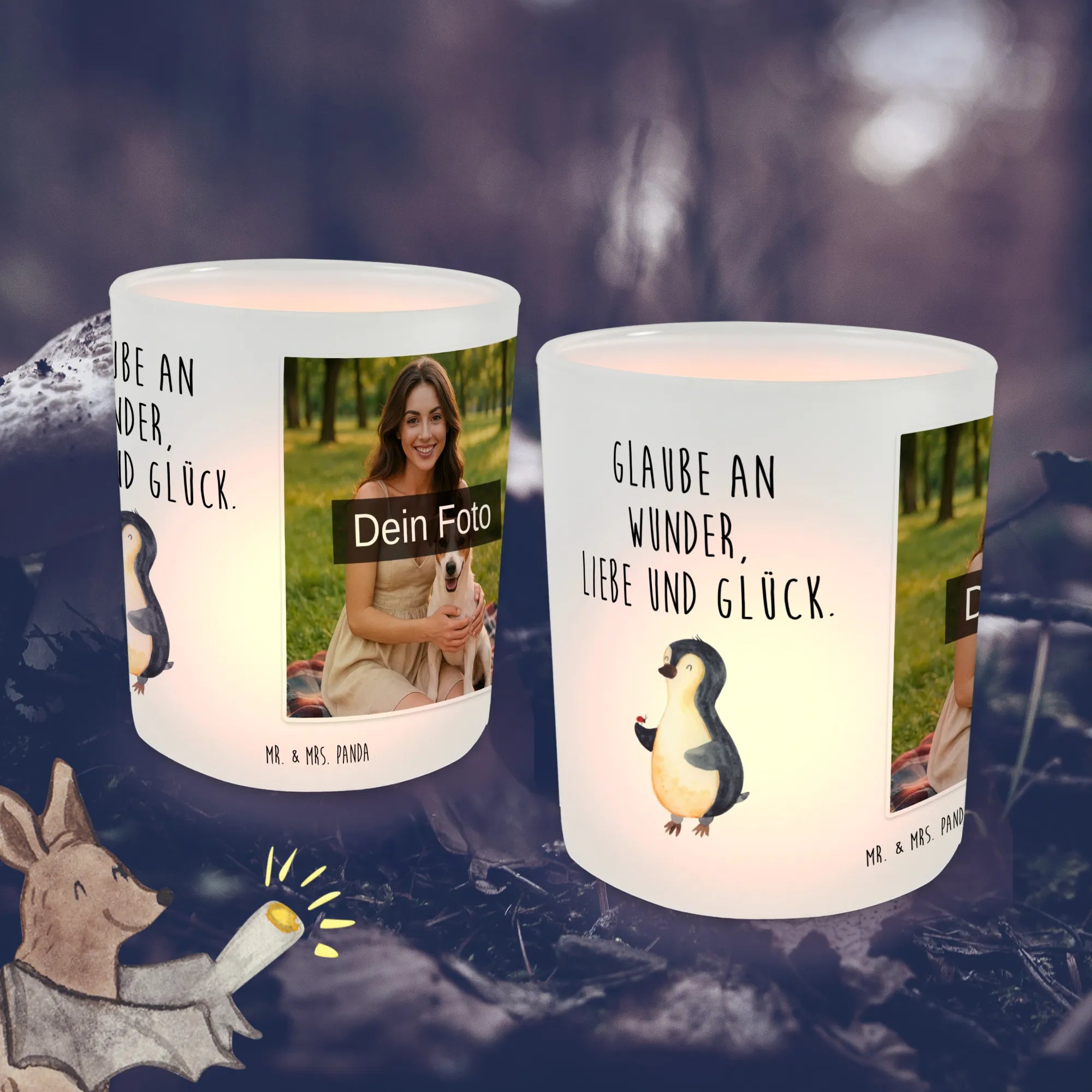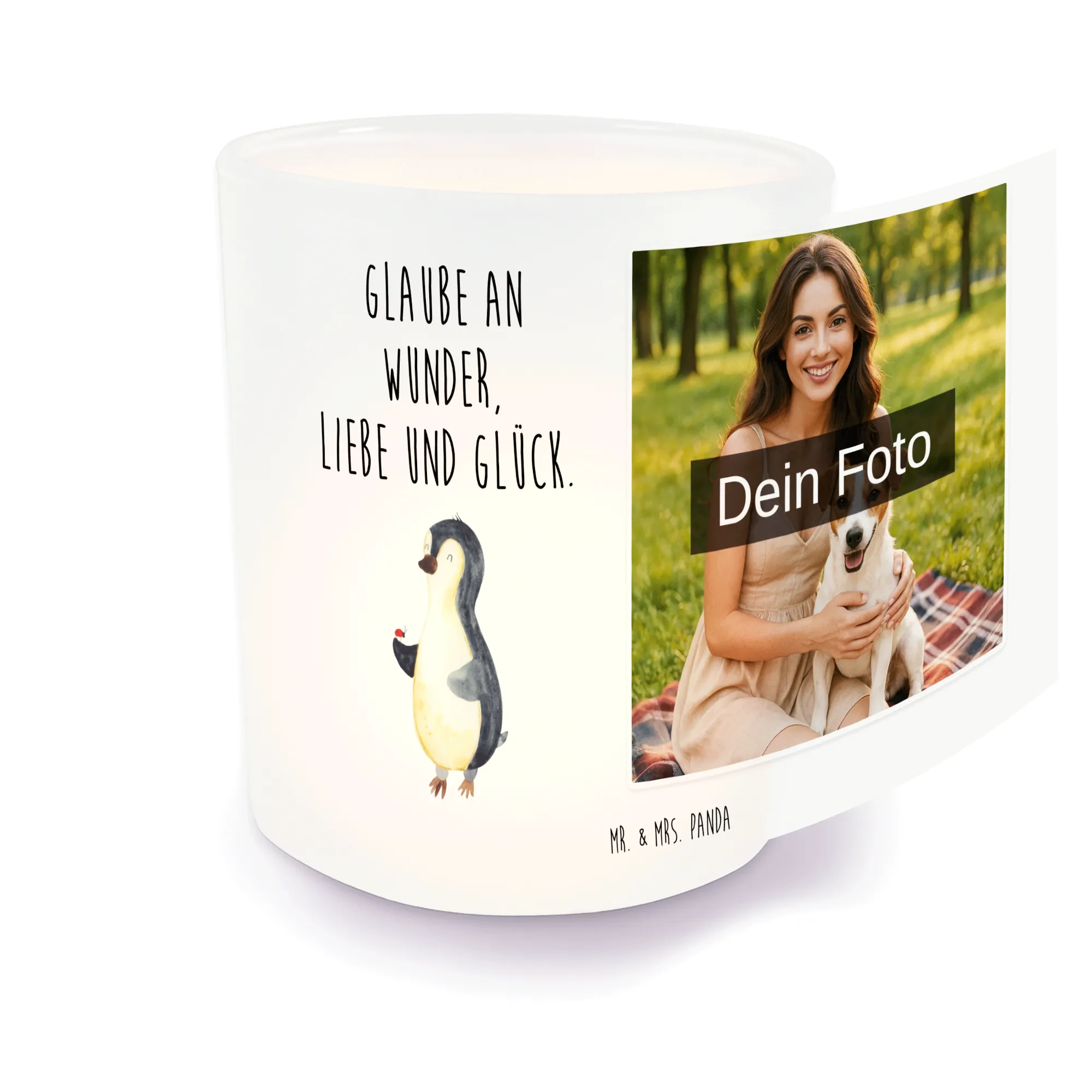 Personalisiertes Foto Windlicht Pinguin Marienkäfer